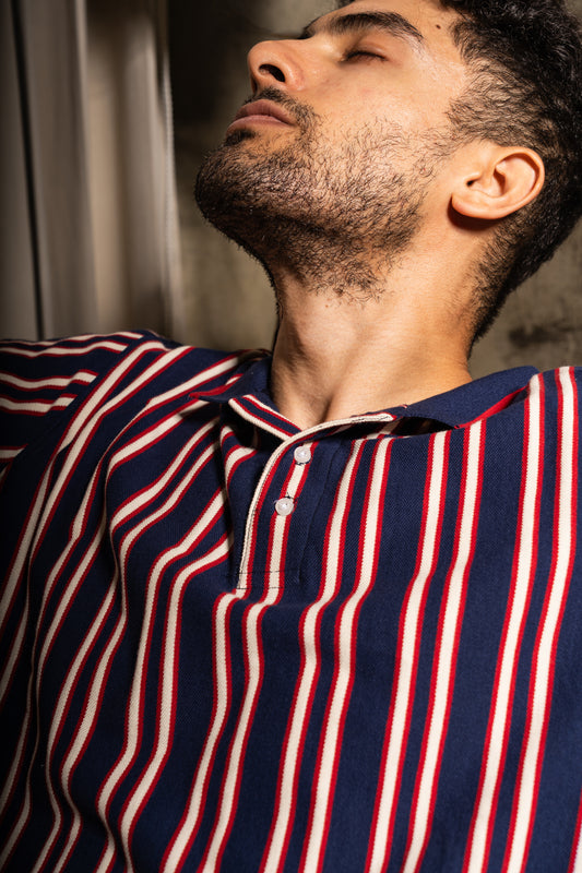 Regency stripe knit polo neck tshirt in red