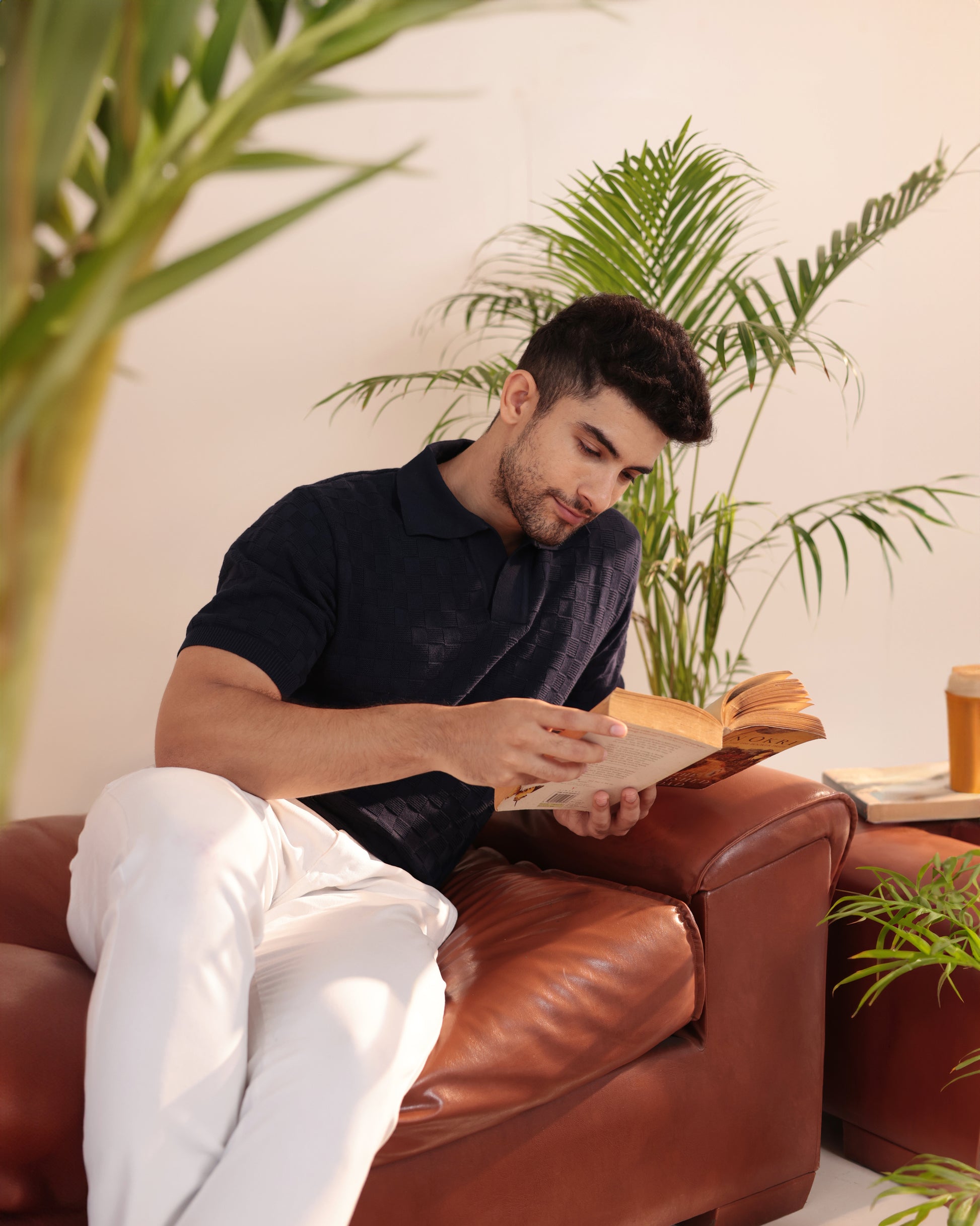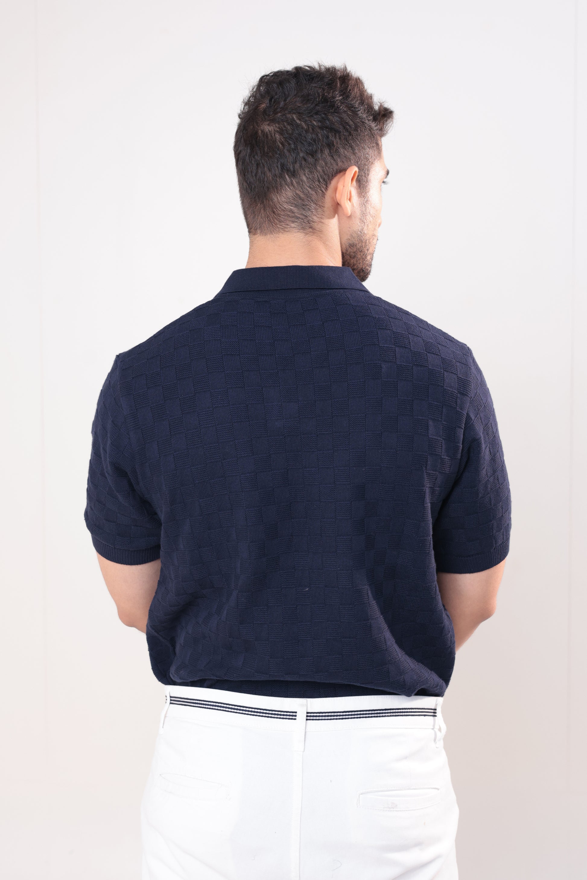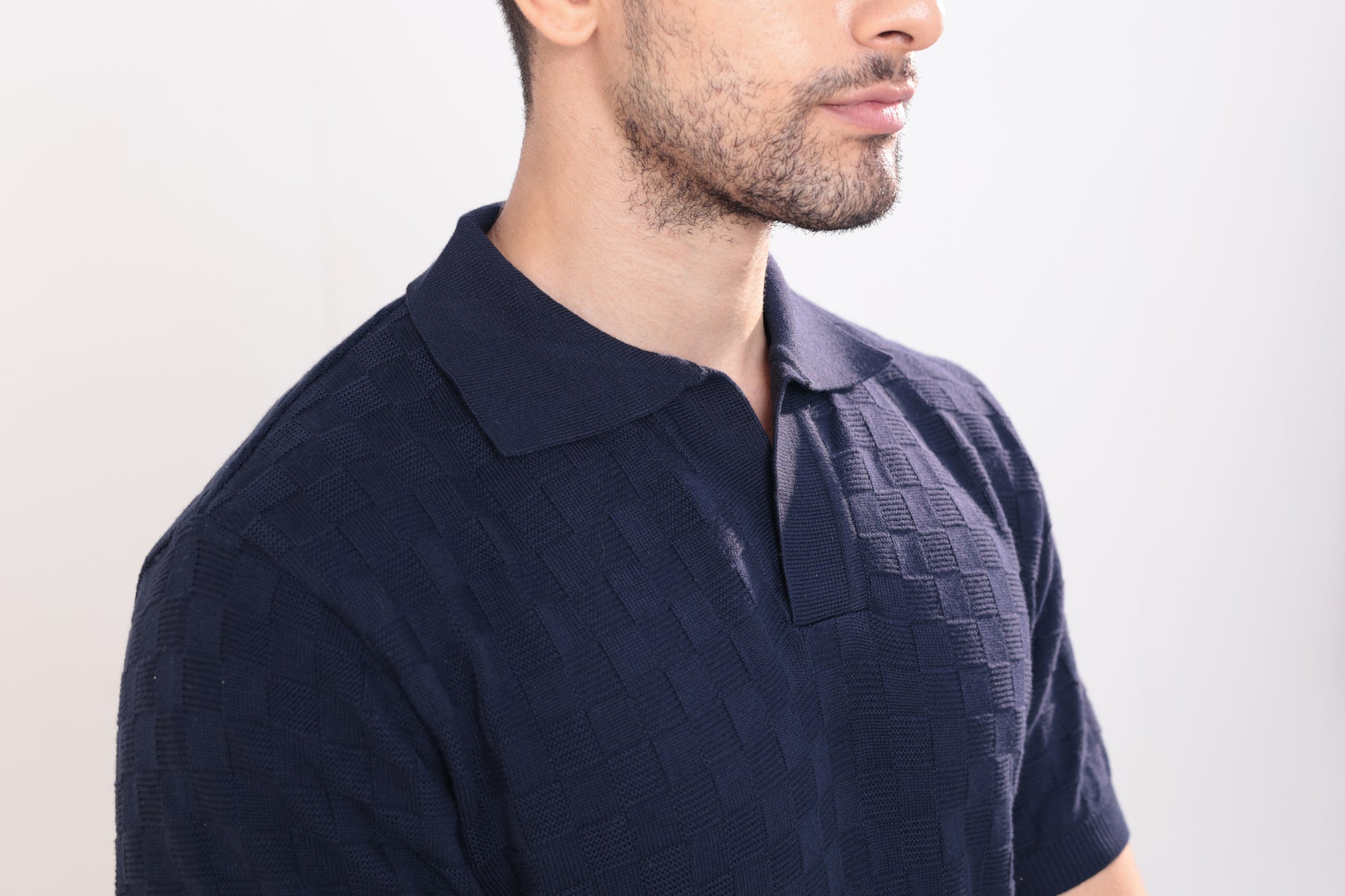Experience luxury with our navy Textured Polo, designed for the sophisticated and classy individual. Made with premium materials, this polo will elevate your style and leave a lasting impression. Elevate your wardrobe with this exclusive piece, perfect for any occasion.