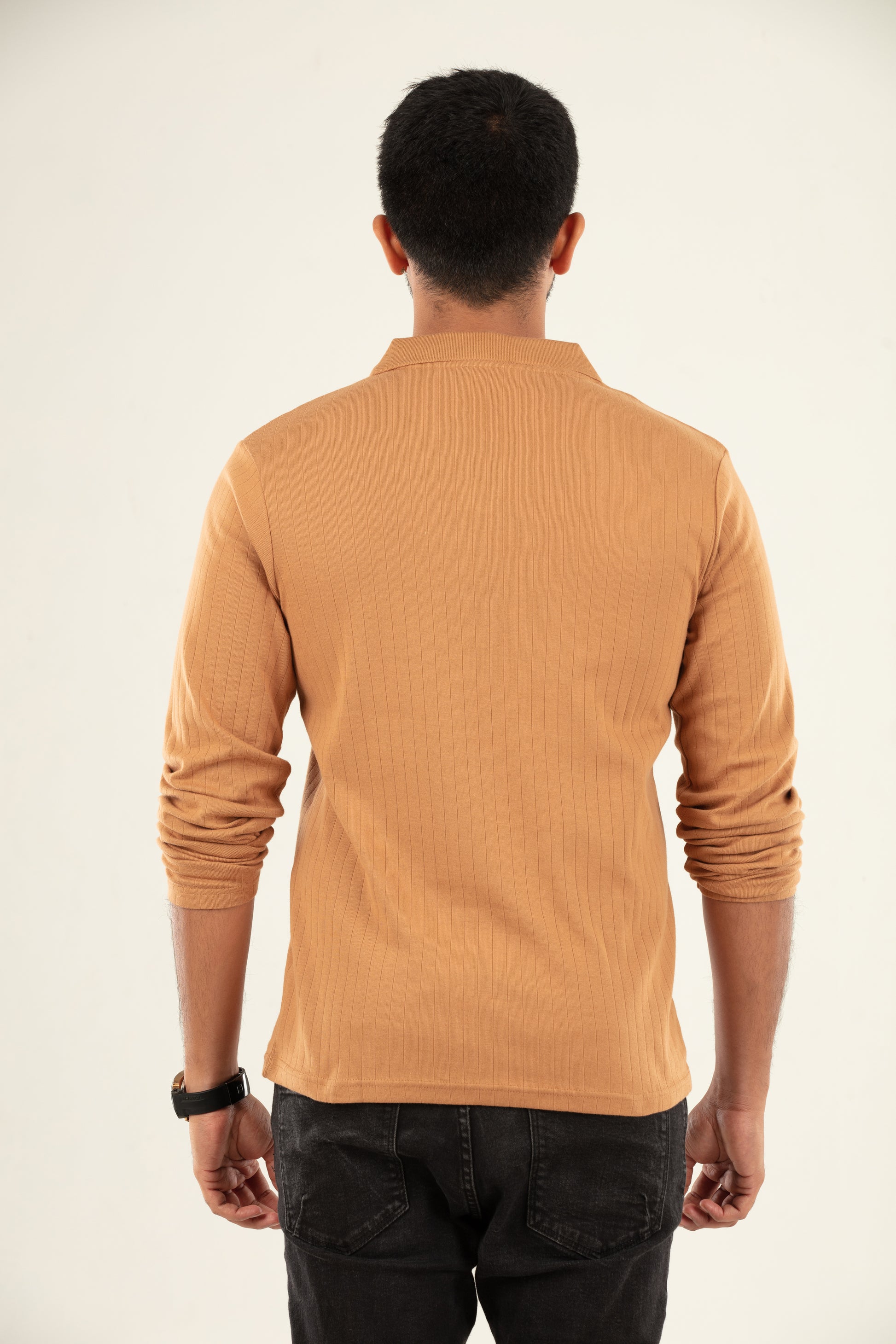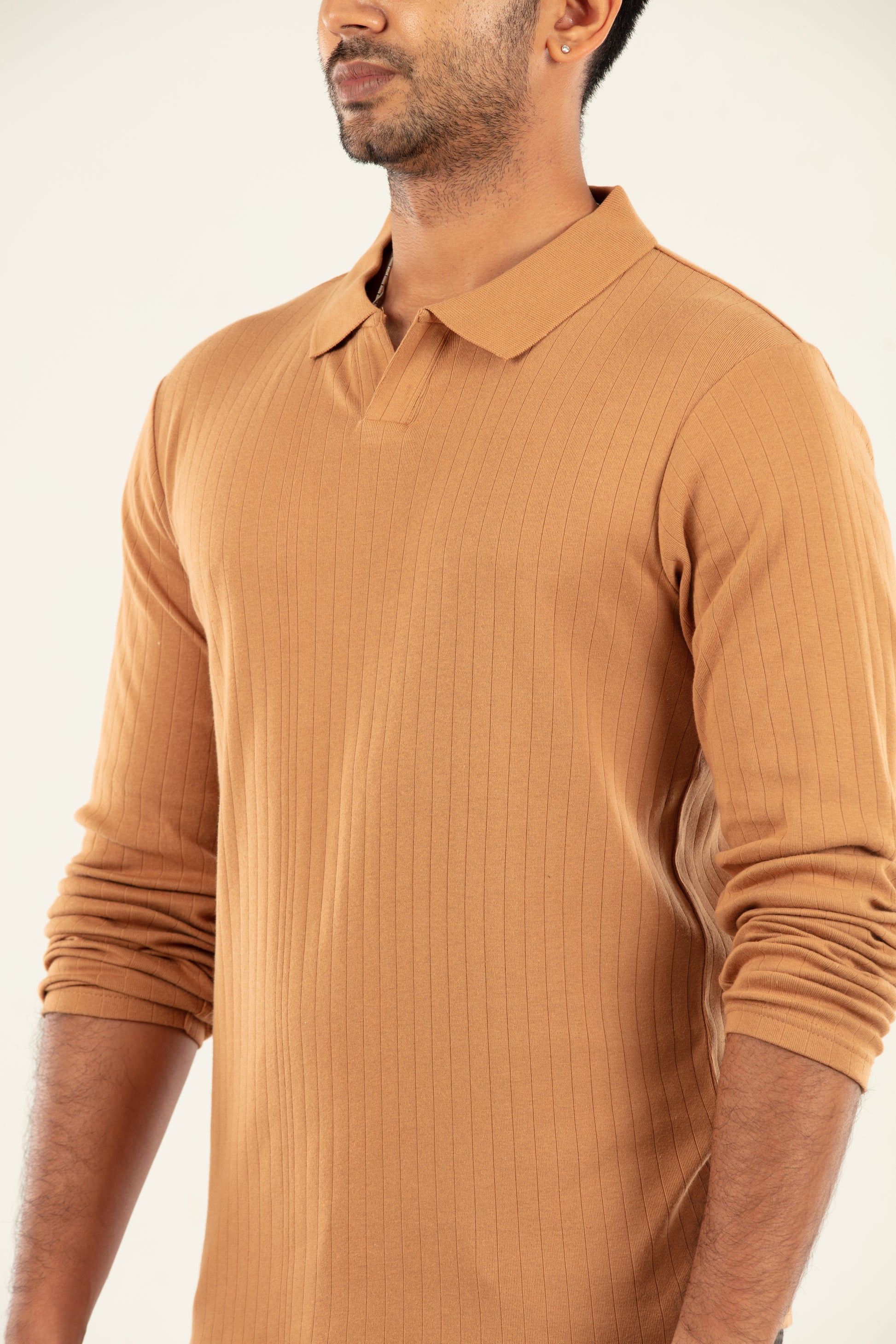 Rajsh kumar Kumar Ribbed textured Polo Tshirt - Tan brown