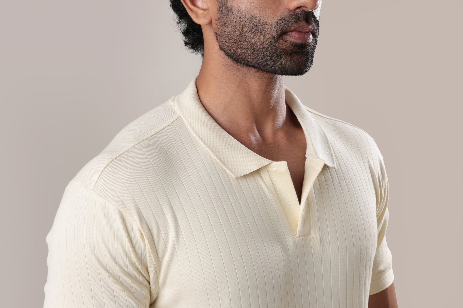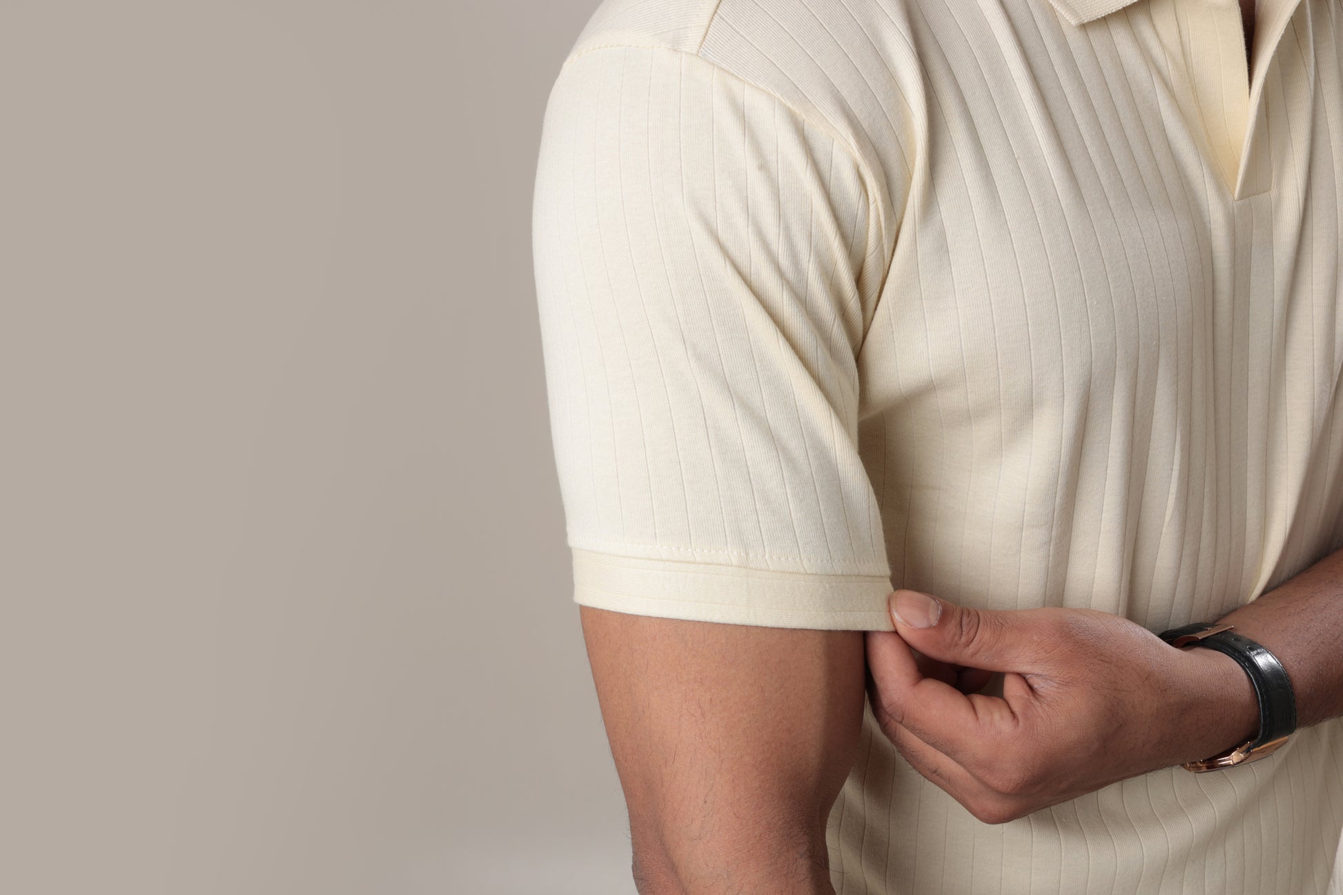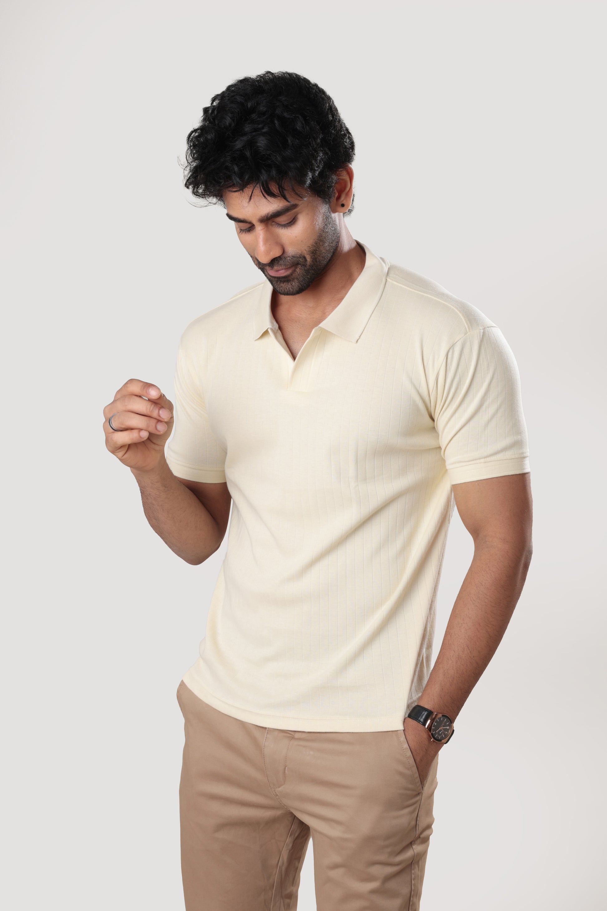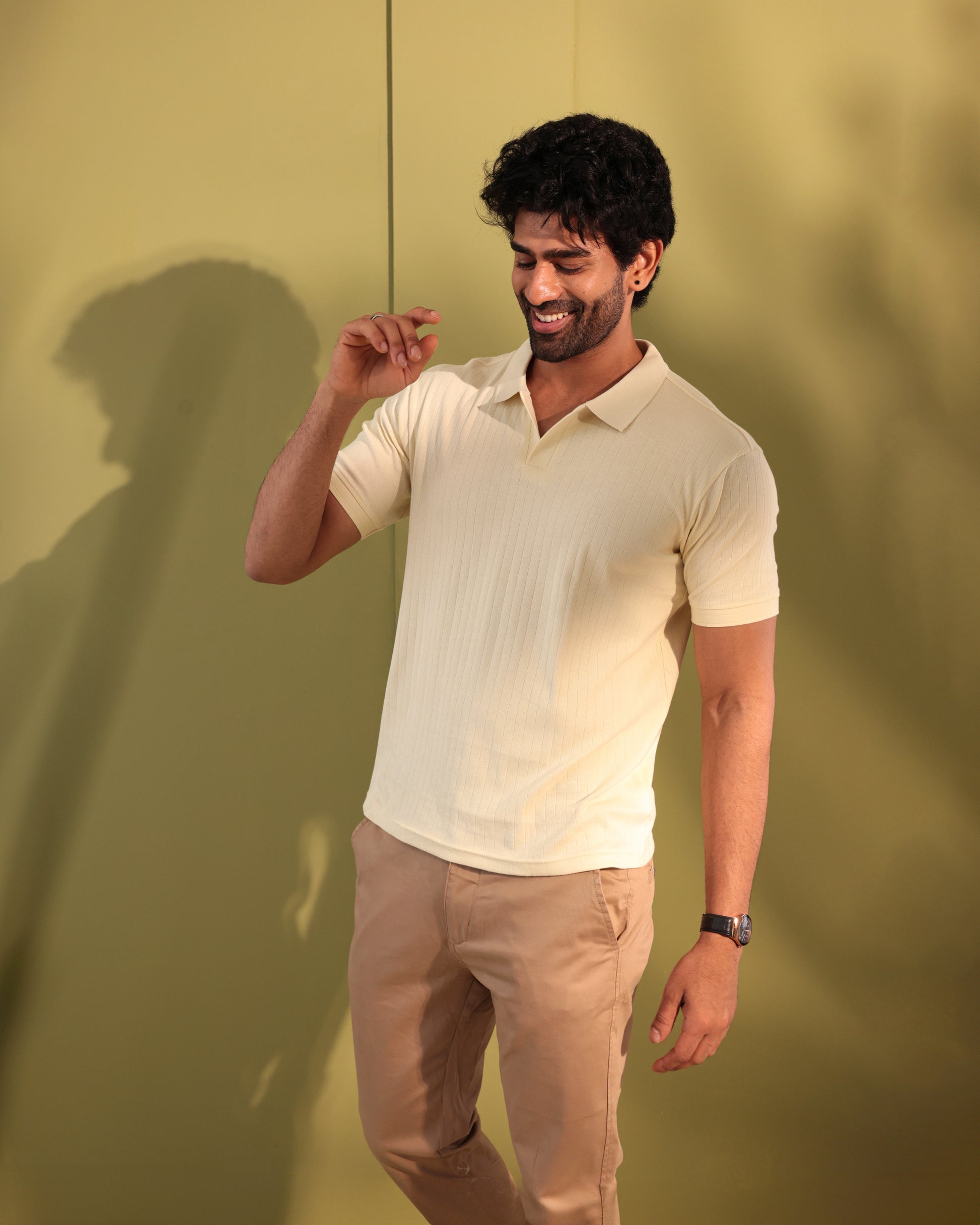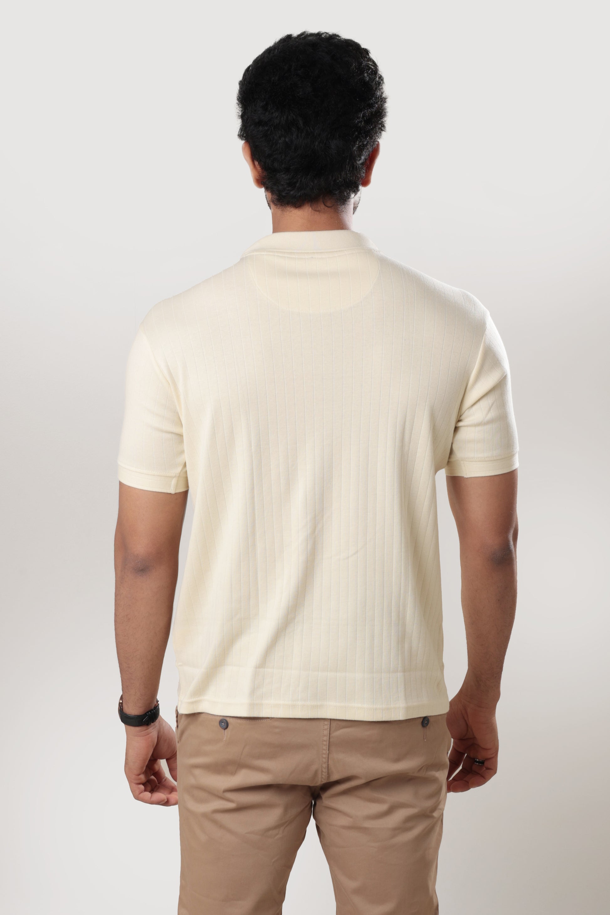 Ribbed textured polo Tshirt - light beige - half sleeve