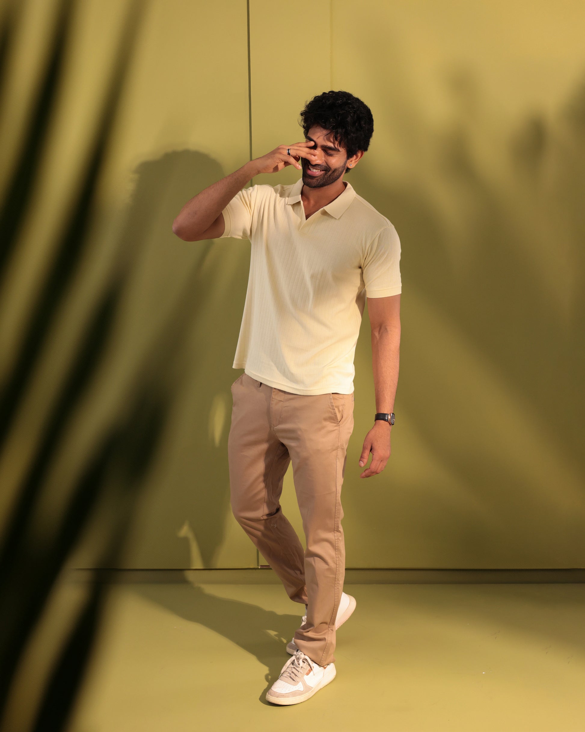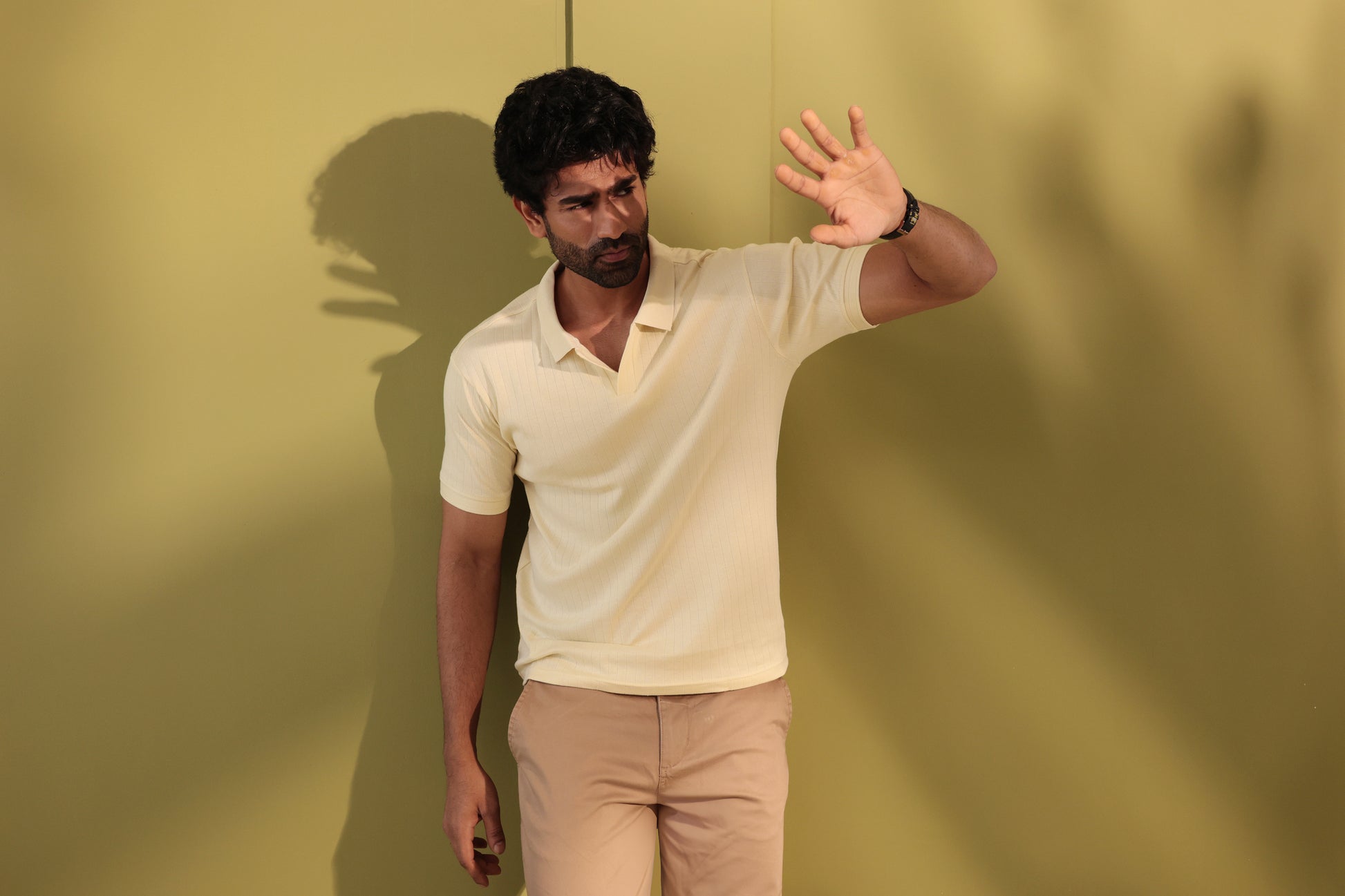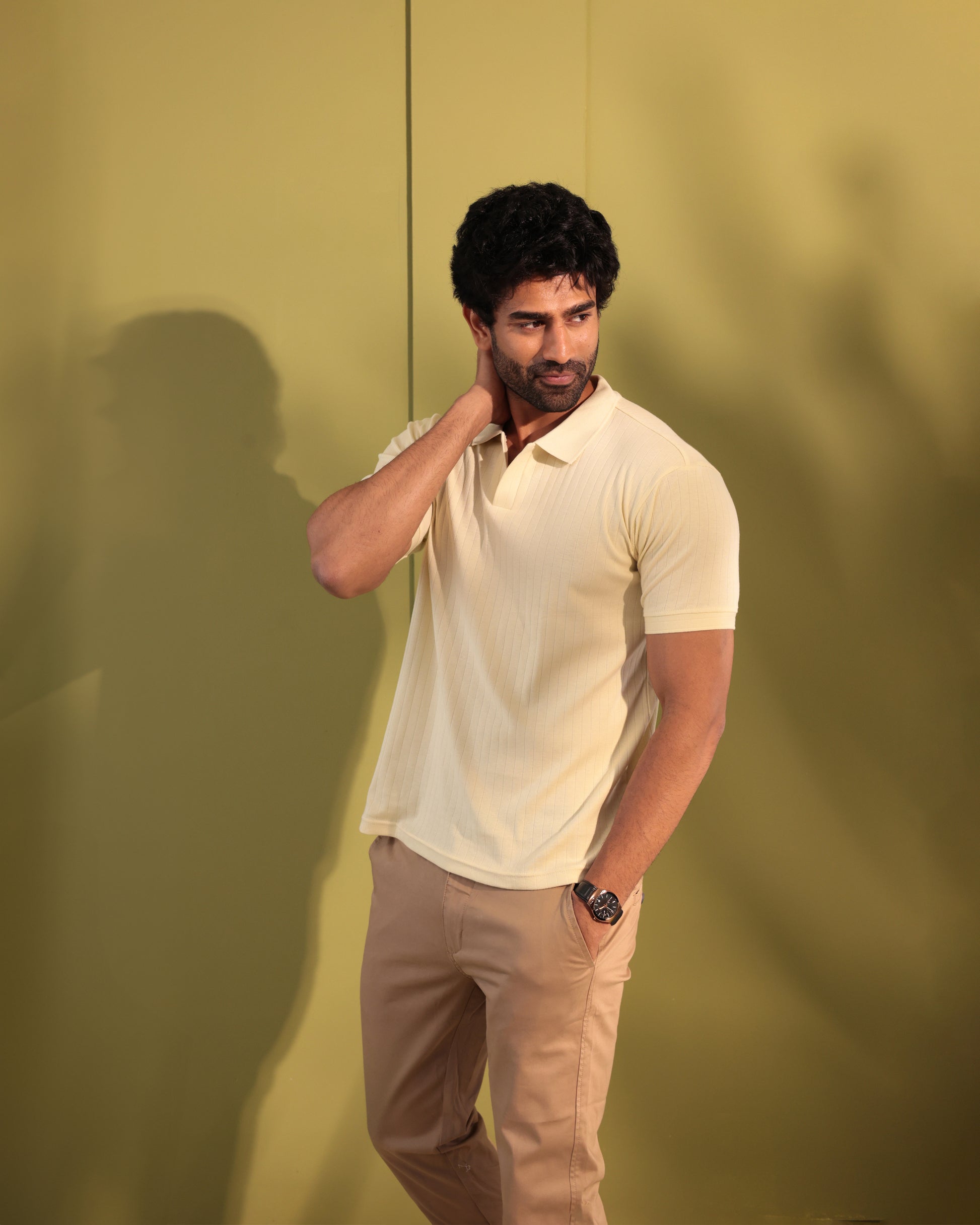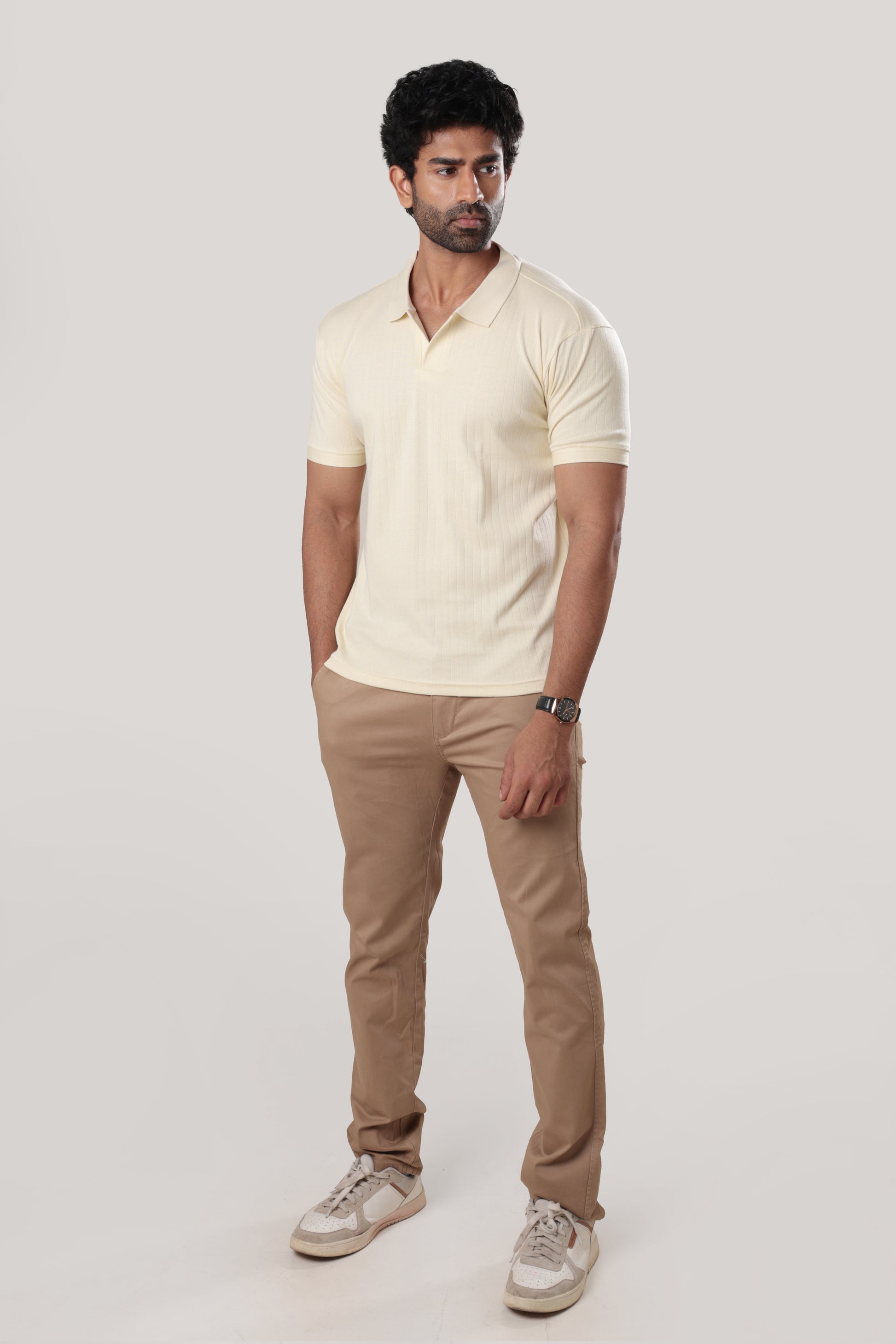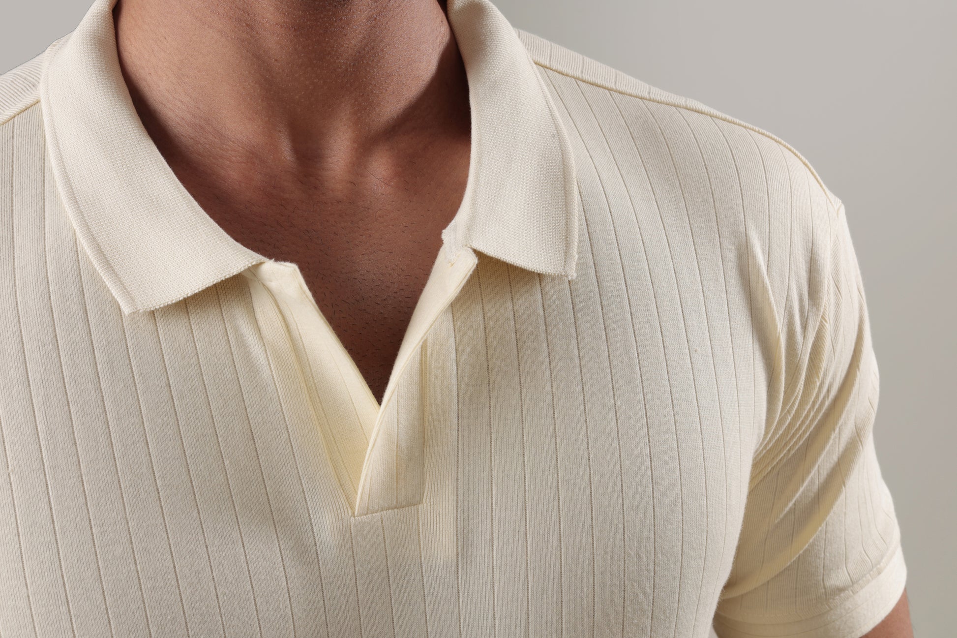 Ribbed textured polo Tshirt - light beige - half sleeve