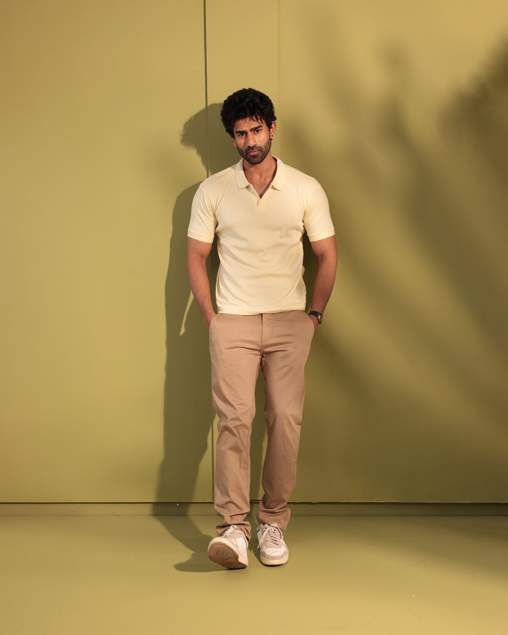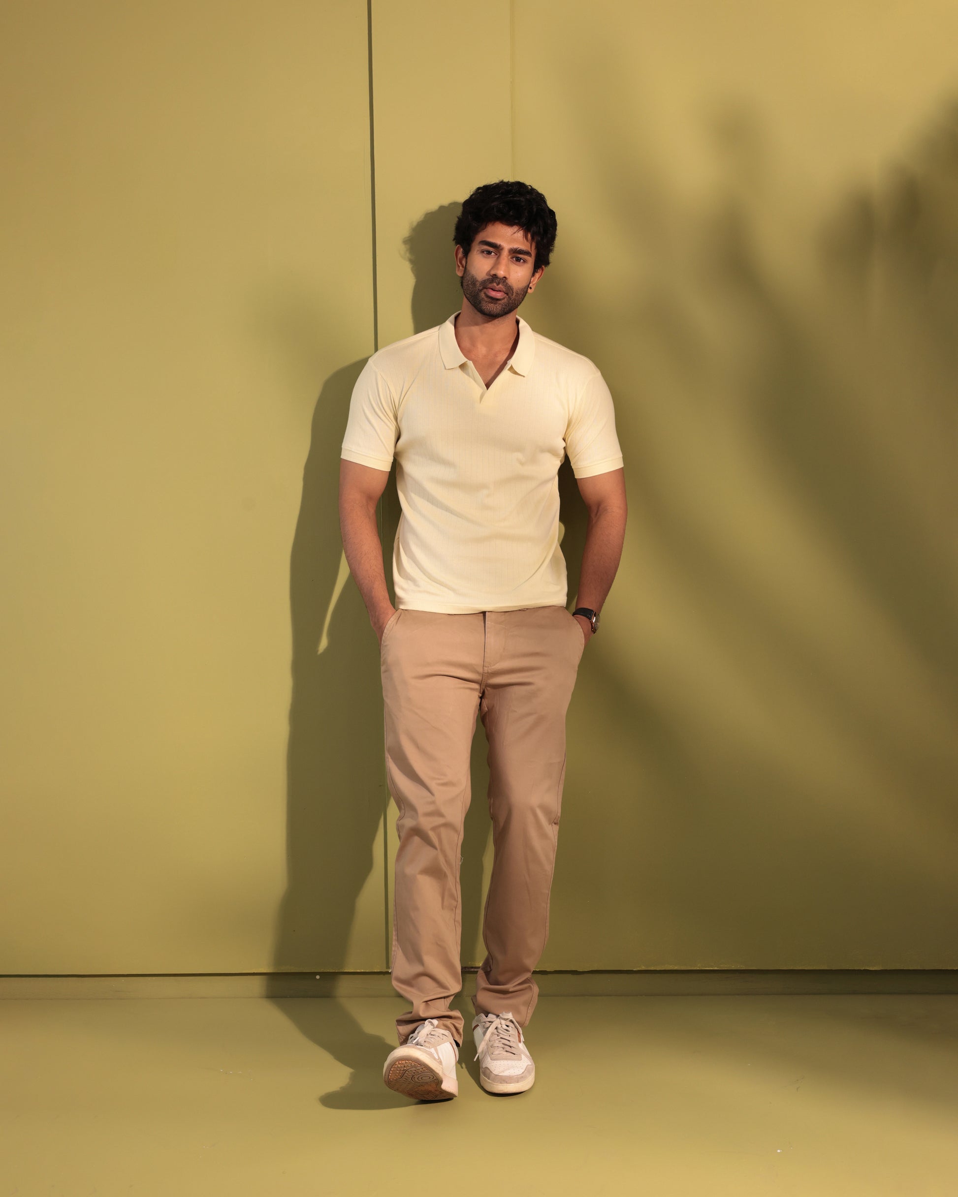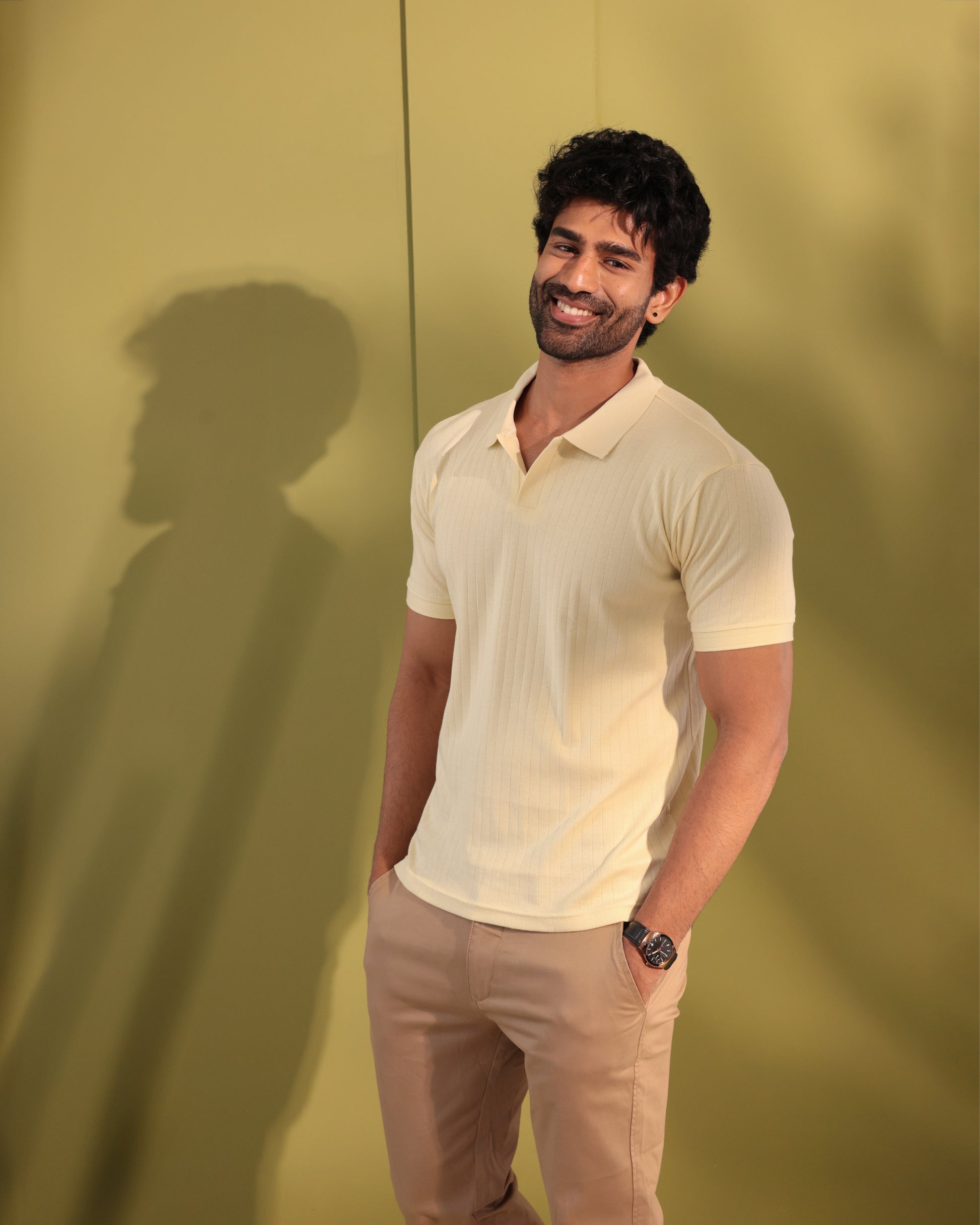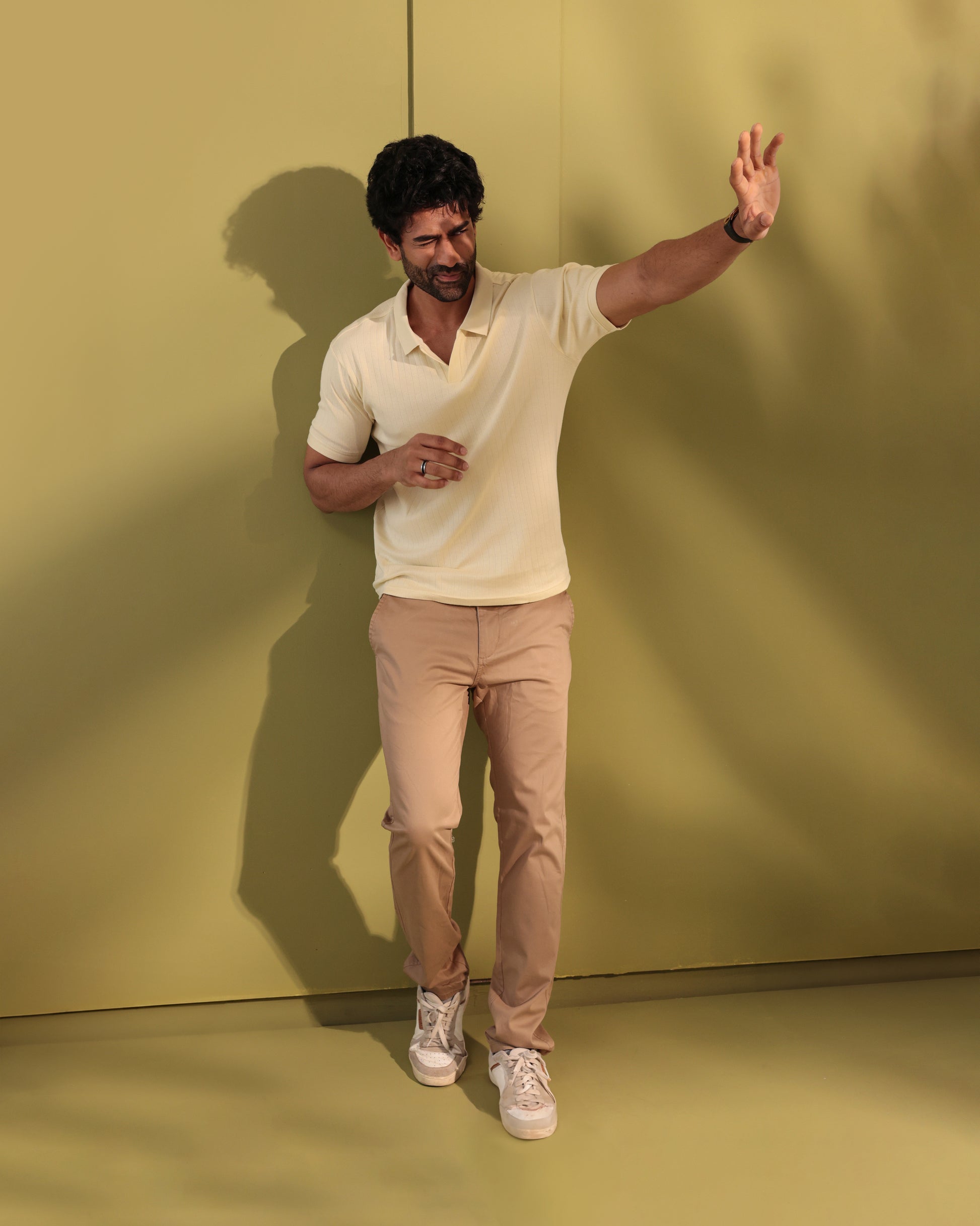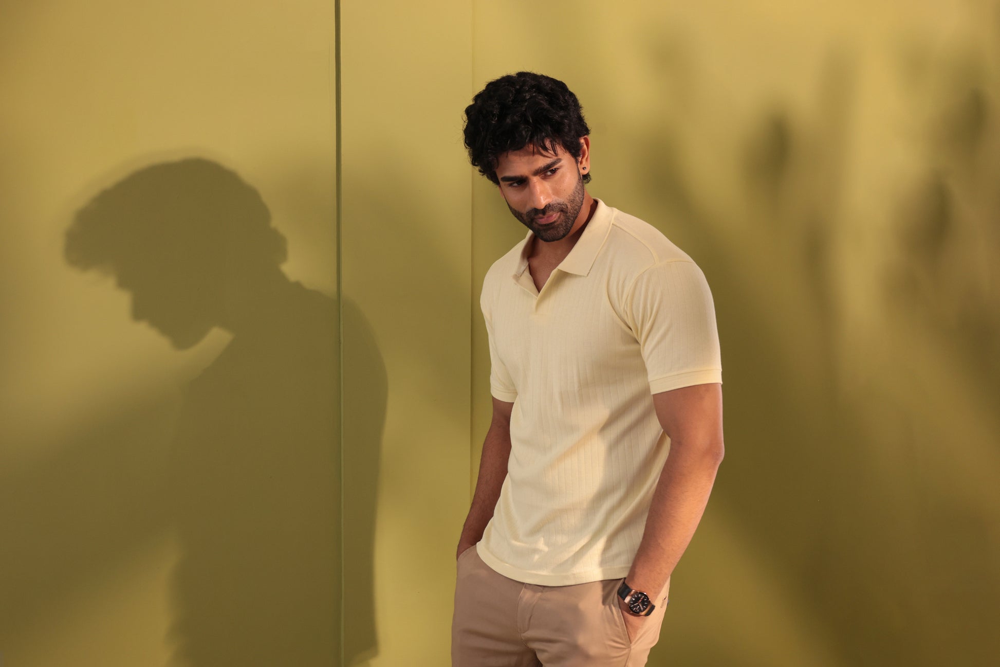 Ribbed textured polo Tshirt - light beige - half sleeve