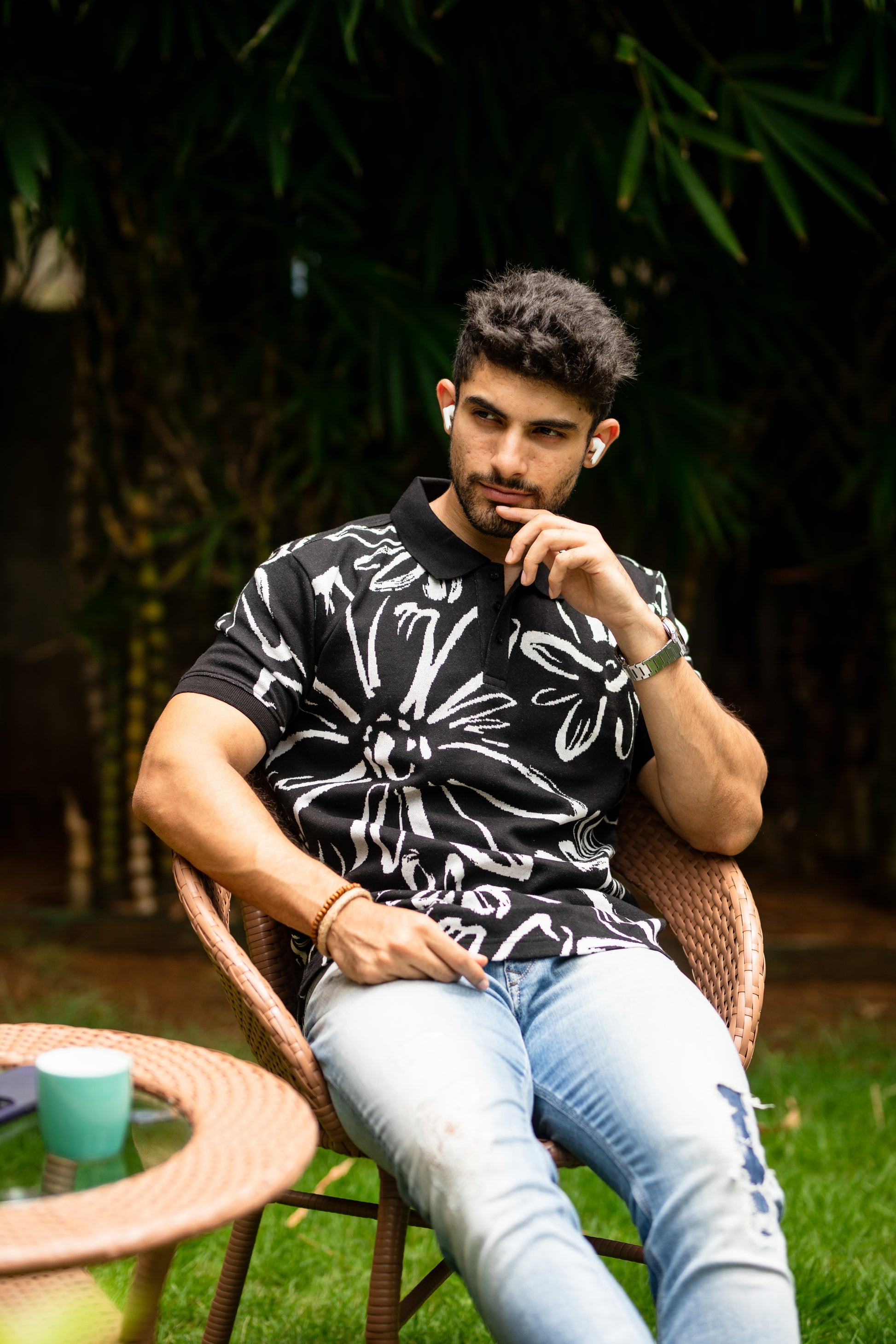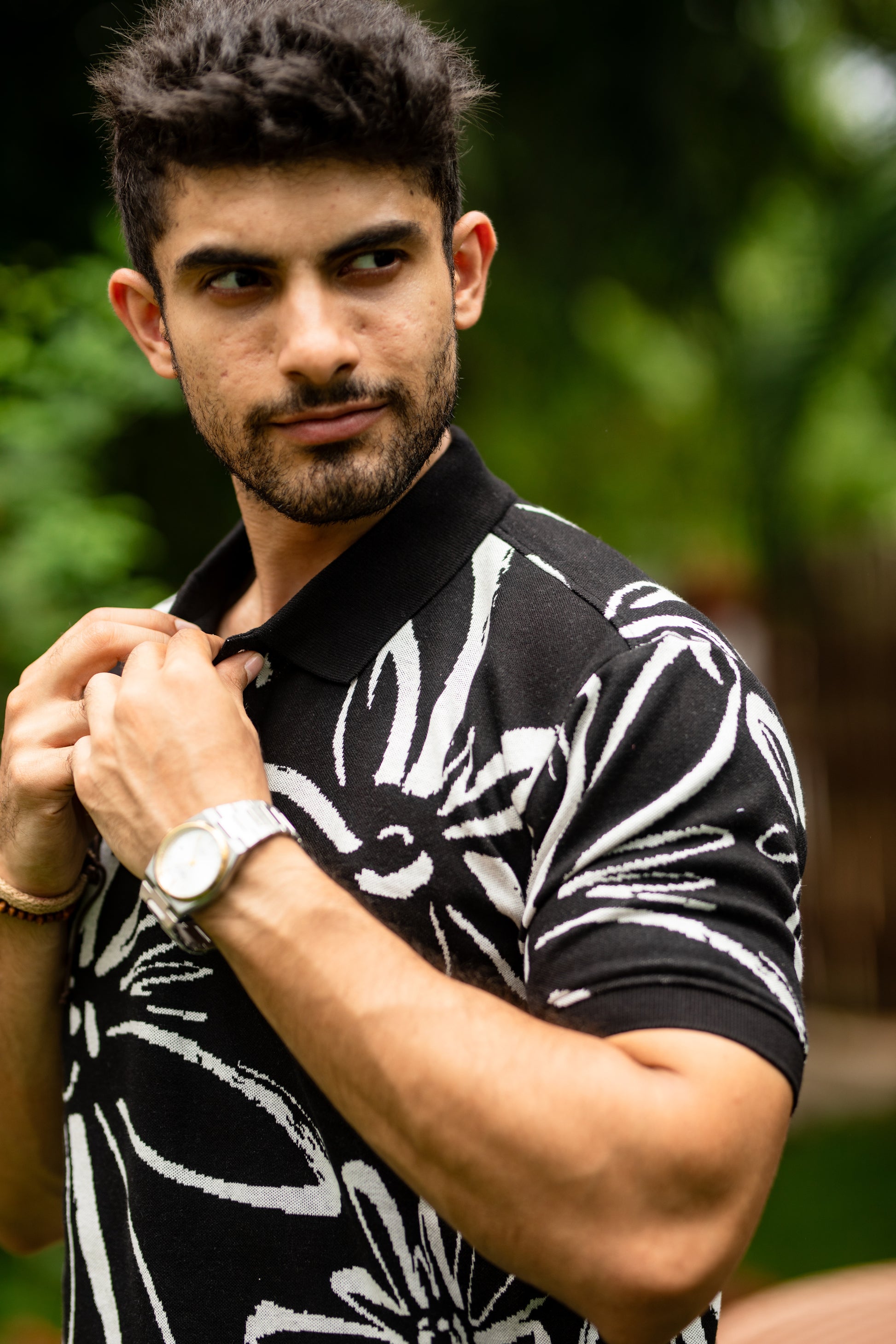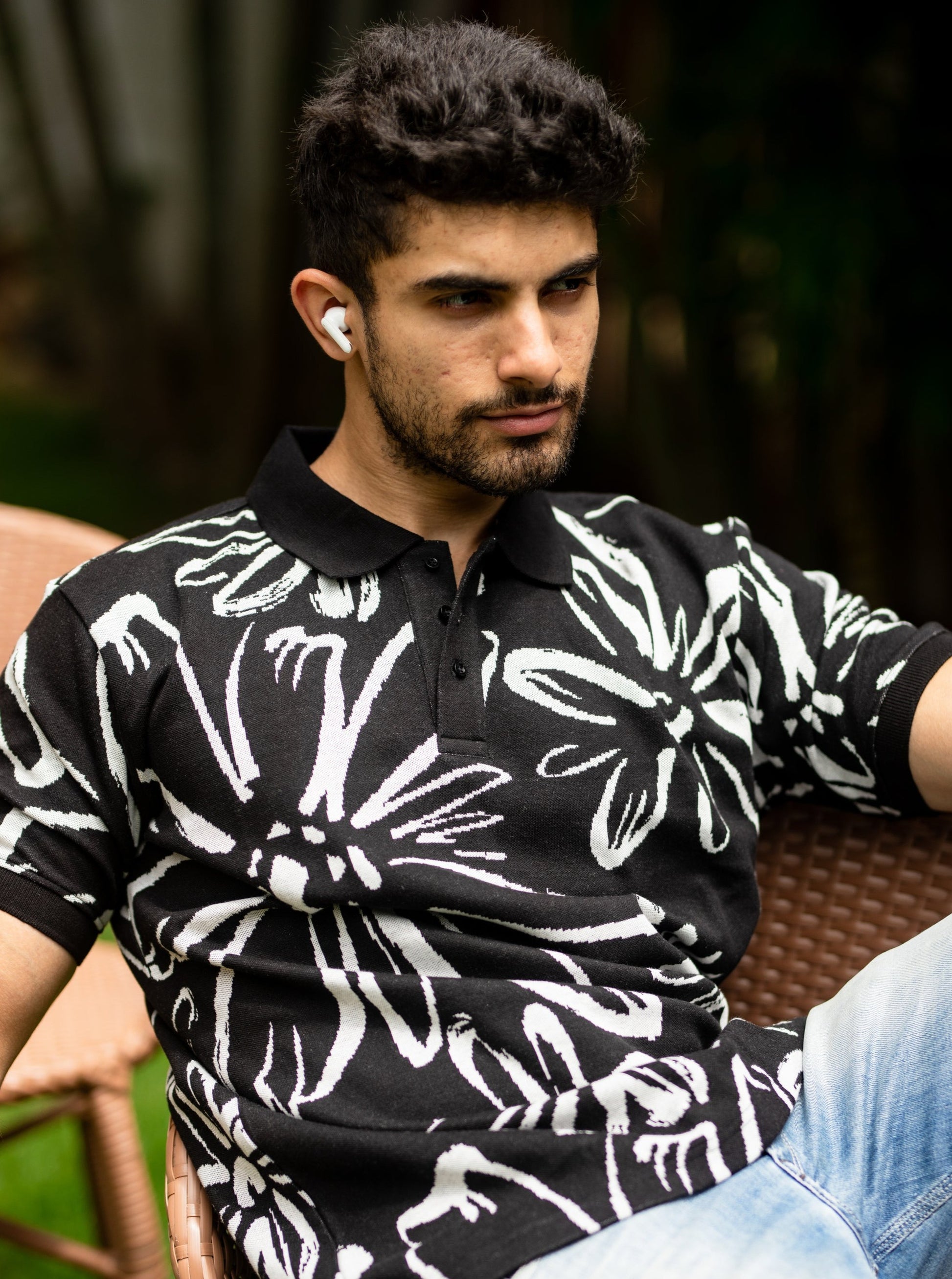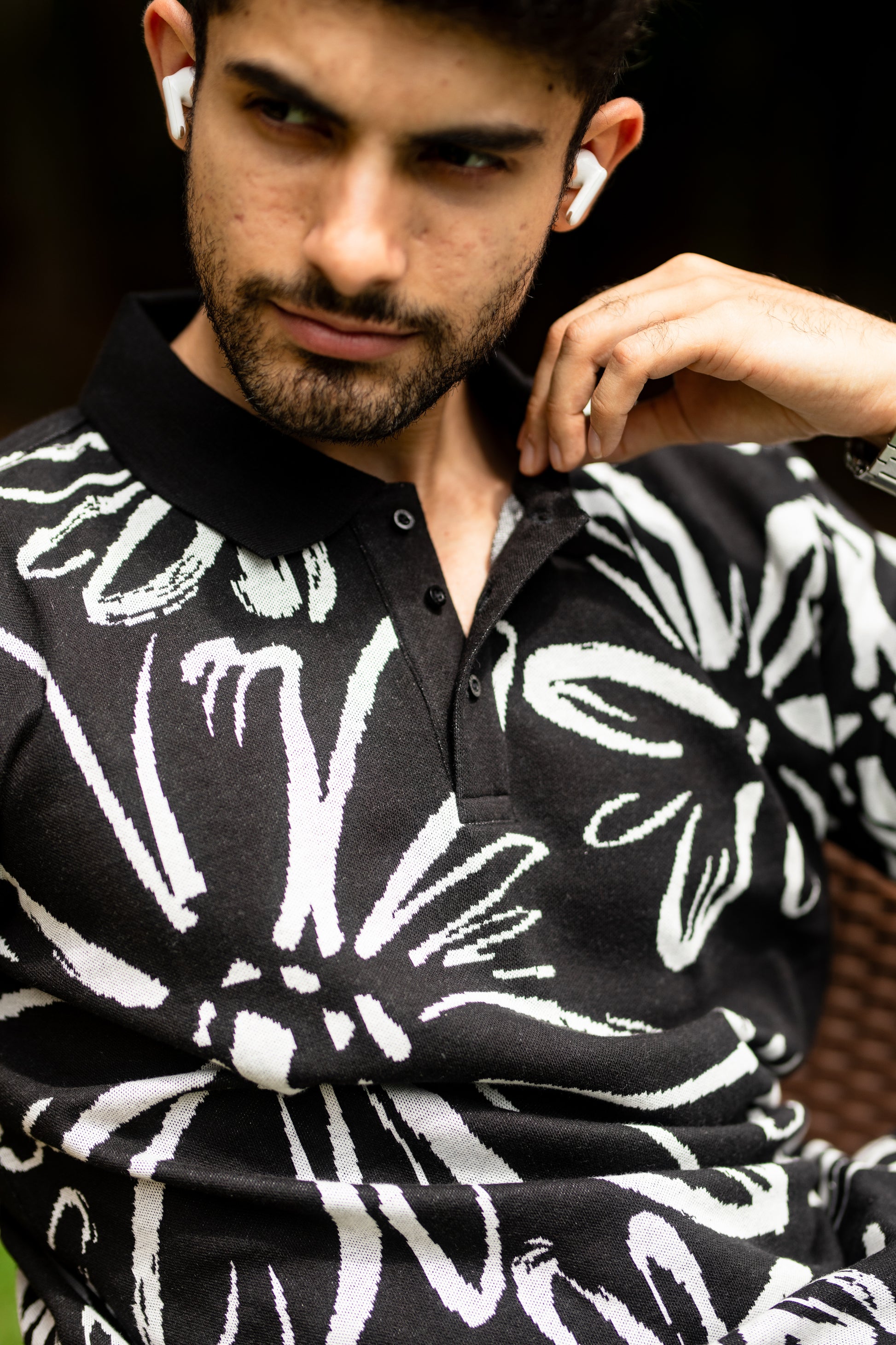 Take the lead and make a statement with our Abloom pattern polo shirt. Featuring a bold, daring pattern, this shirt is perfect for those who like to take risks and stand out from the crowd. Let your adventurous spirit shine through with every stride in this dynamic polo shirt.