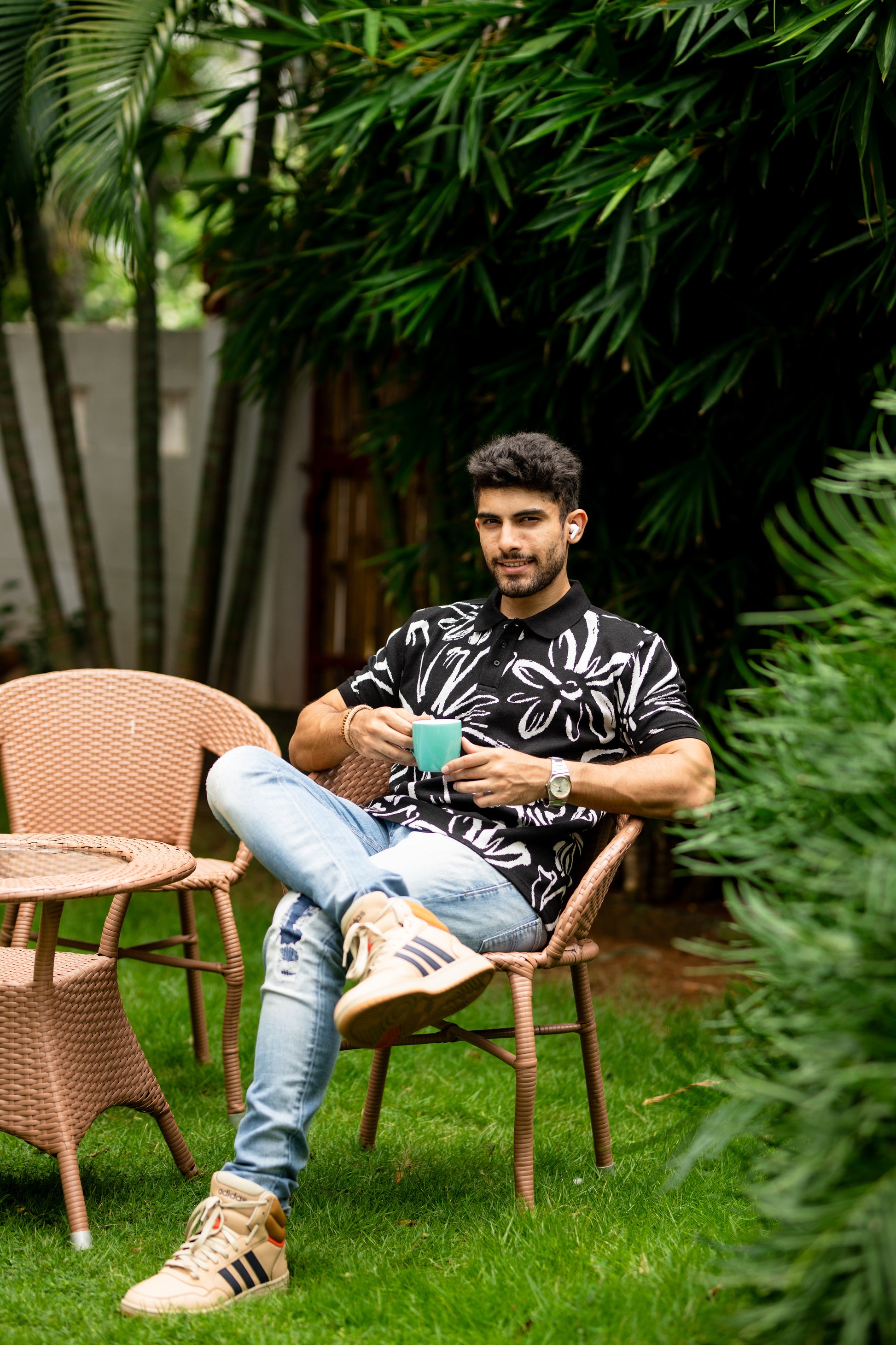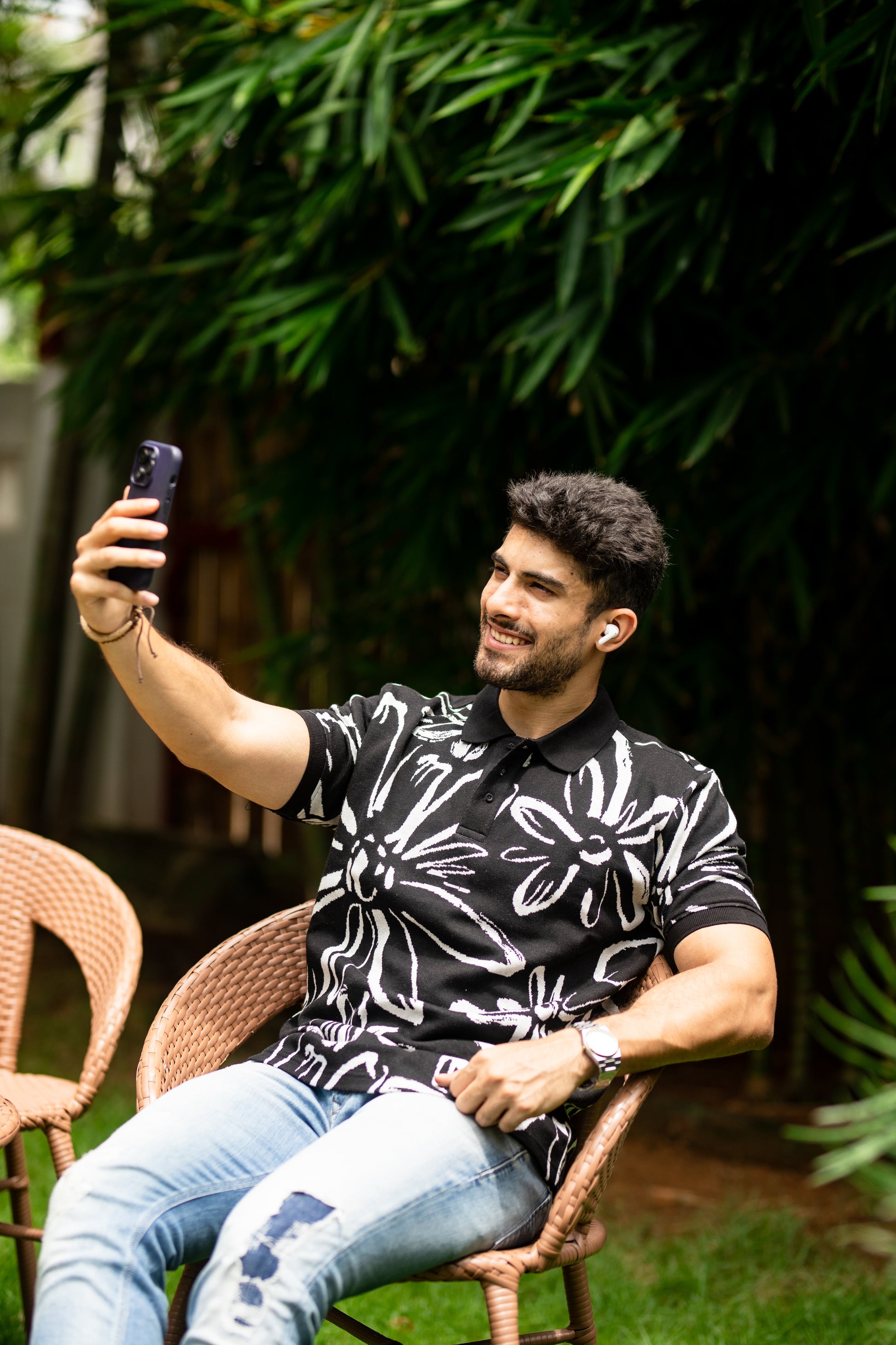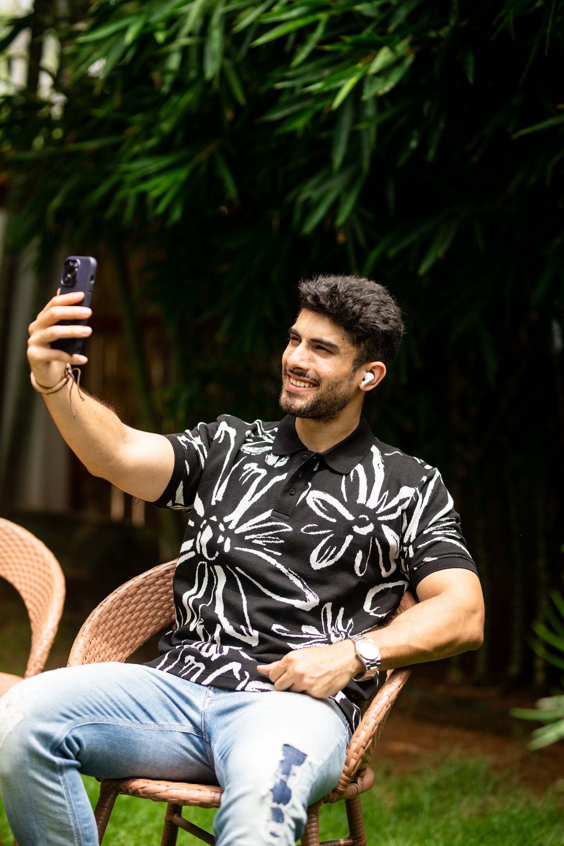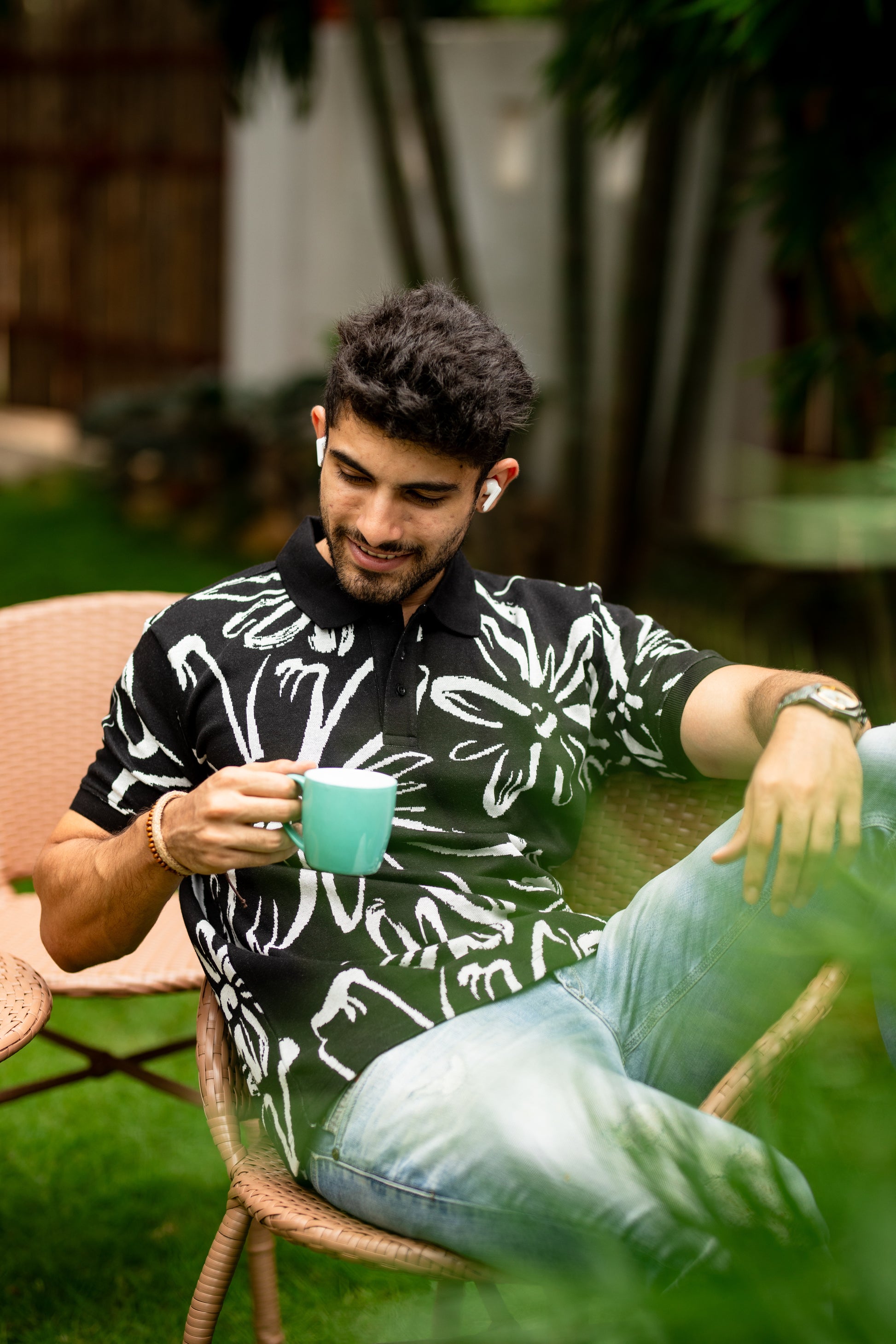Take the lead and make a statement with our Abloom pattern polo shirt. Featuring a bold, daring pattern, this shirt is perfect for those who like to take risks and stand out from the crowd. Let your adventurous spirit shine through with every stride in this dynamic polo shirt.