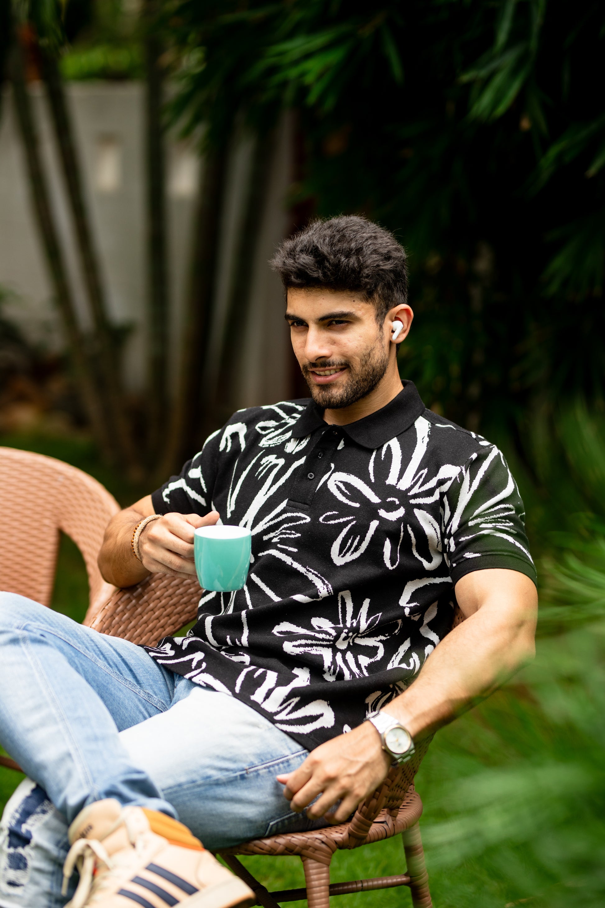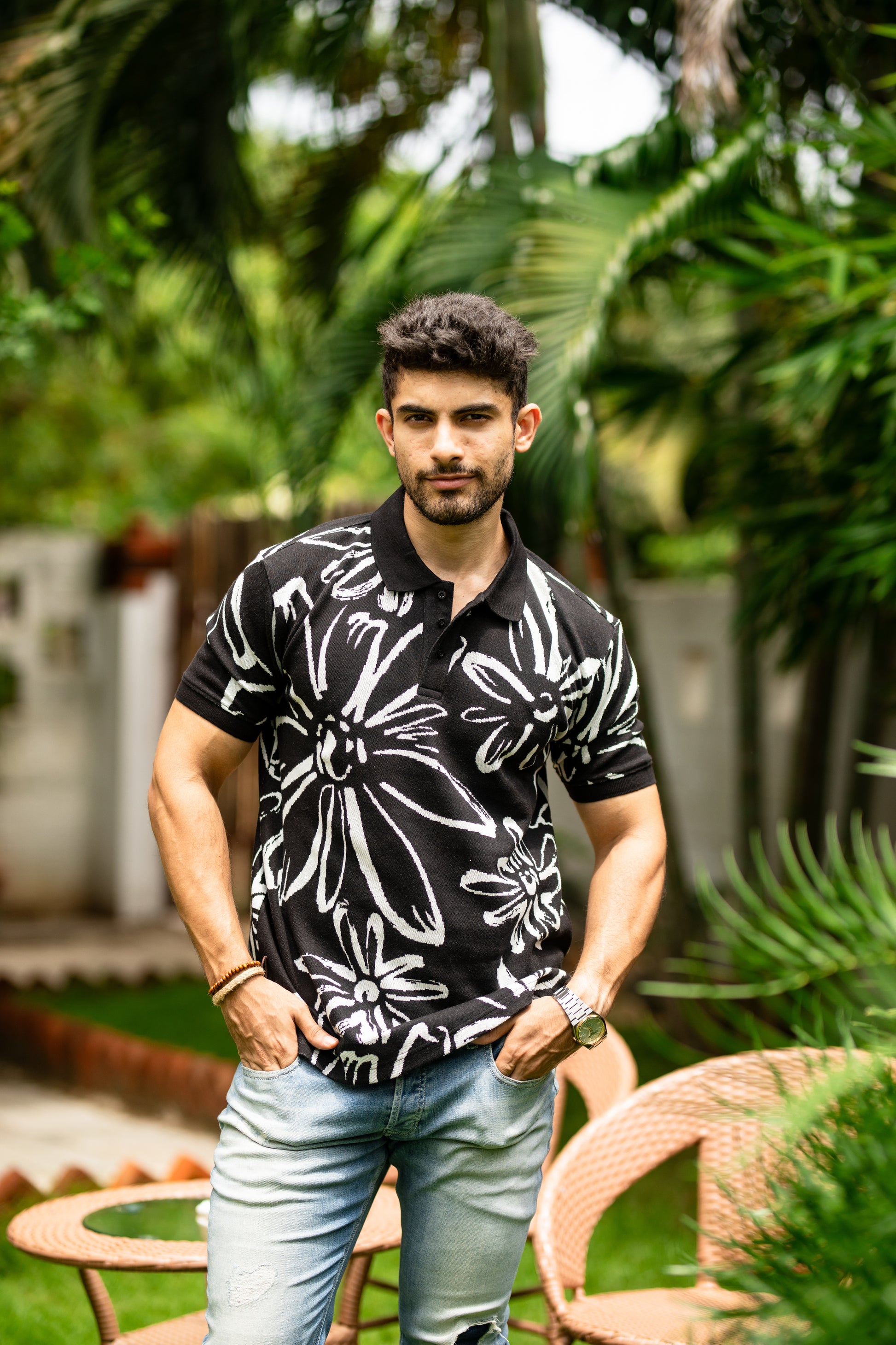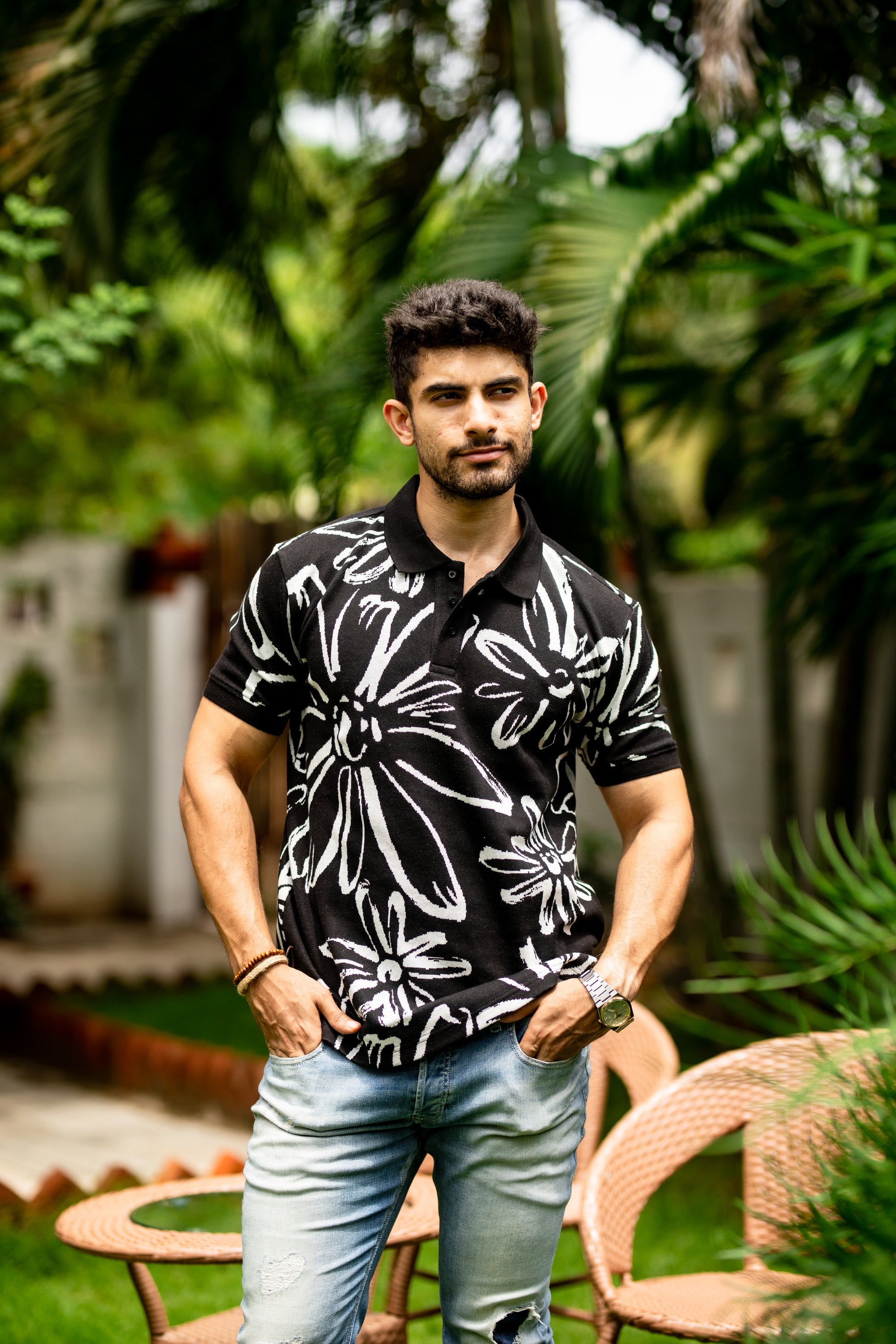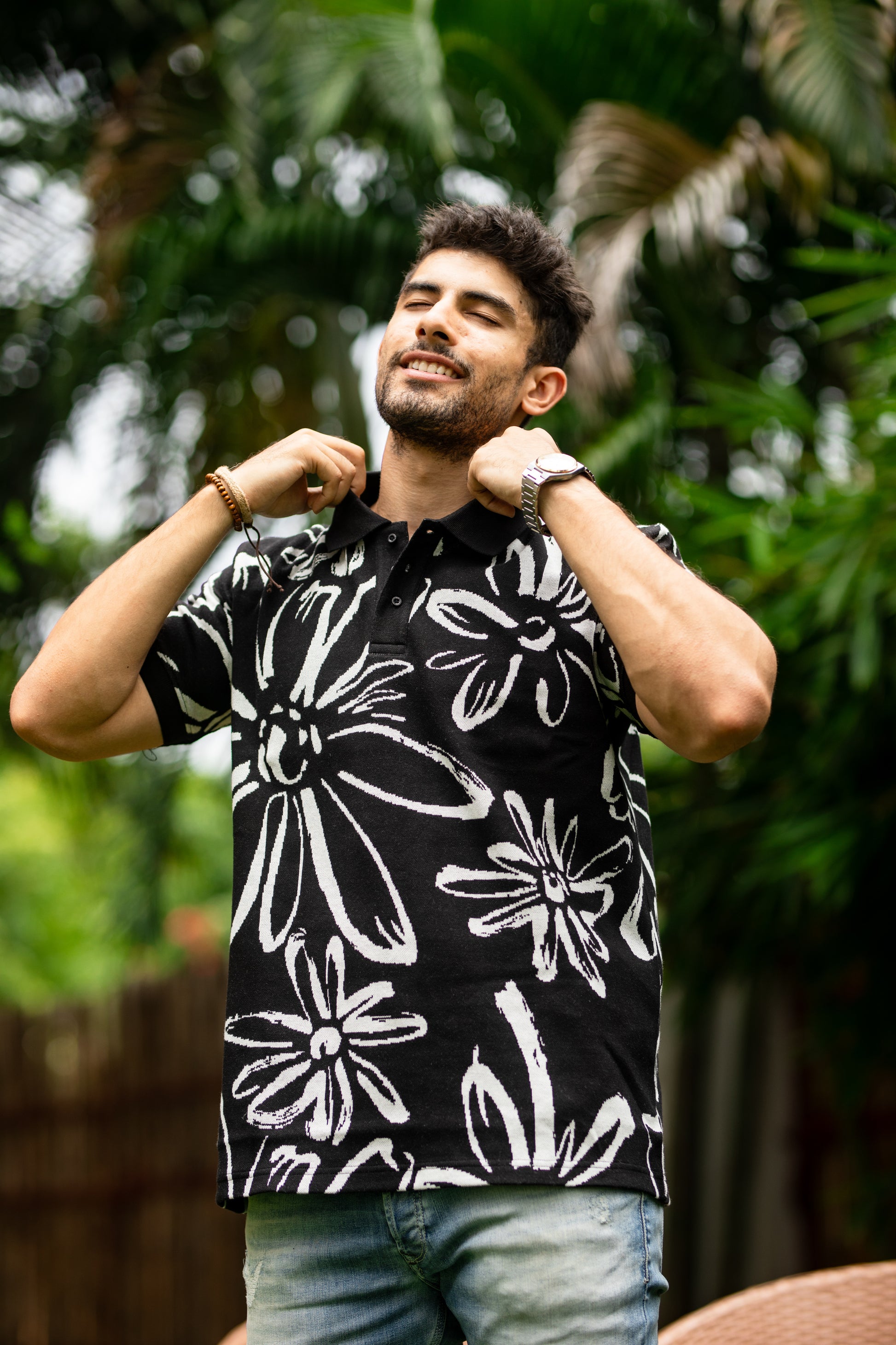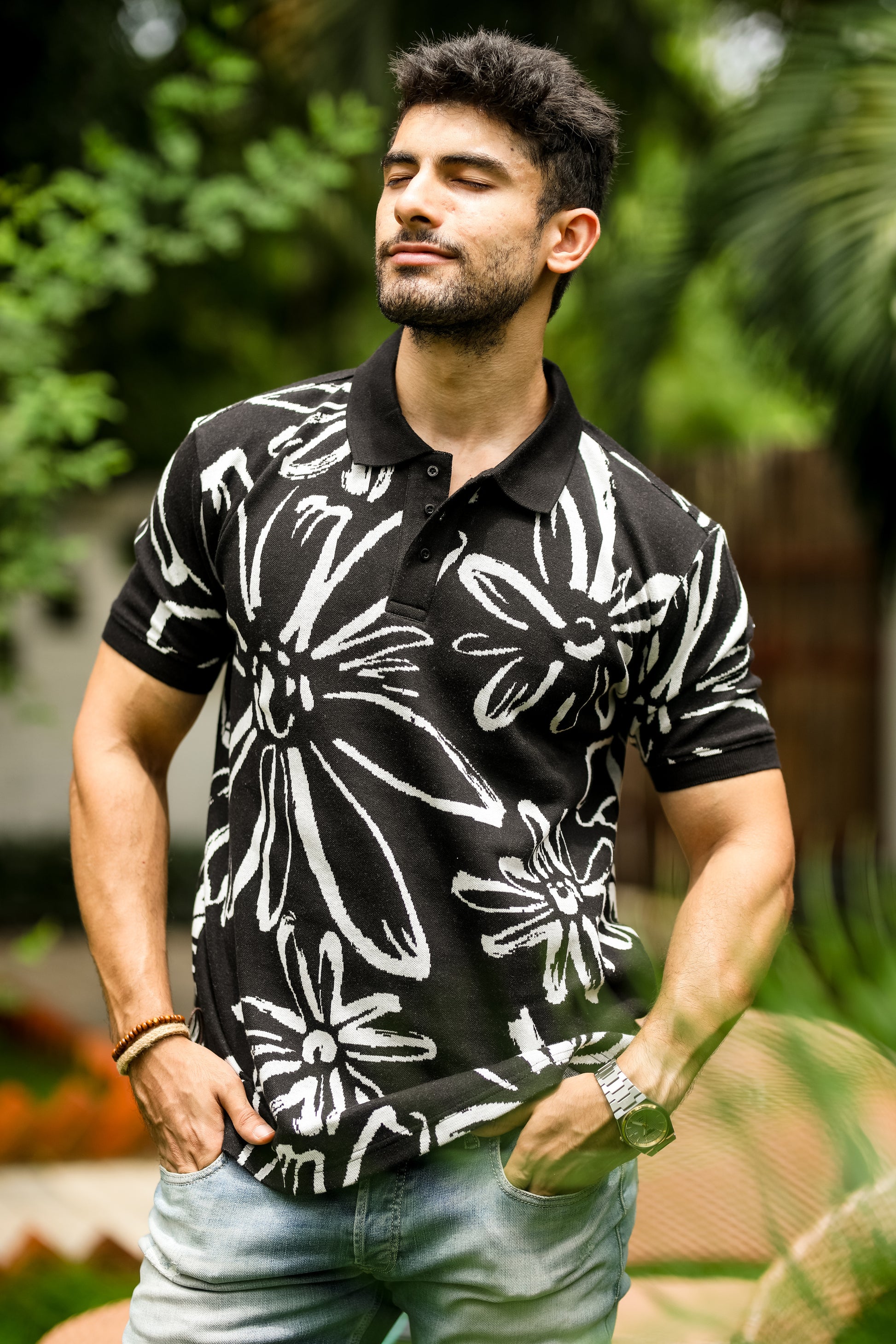 Abloom pattern polo shirt