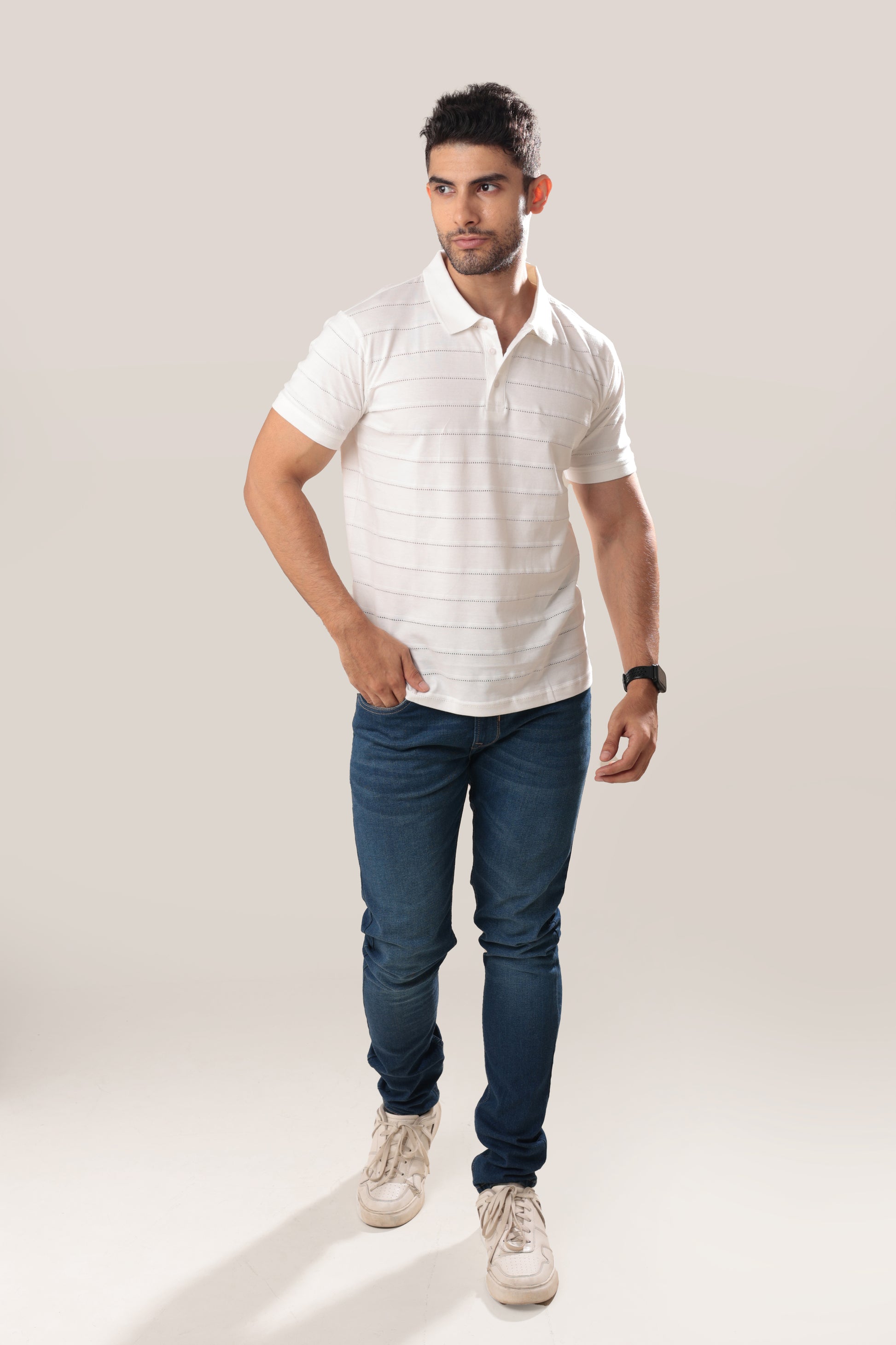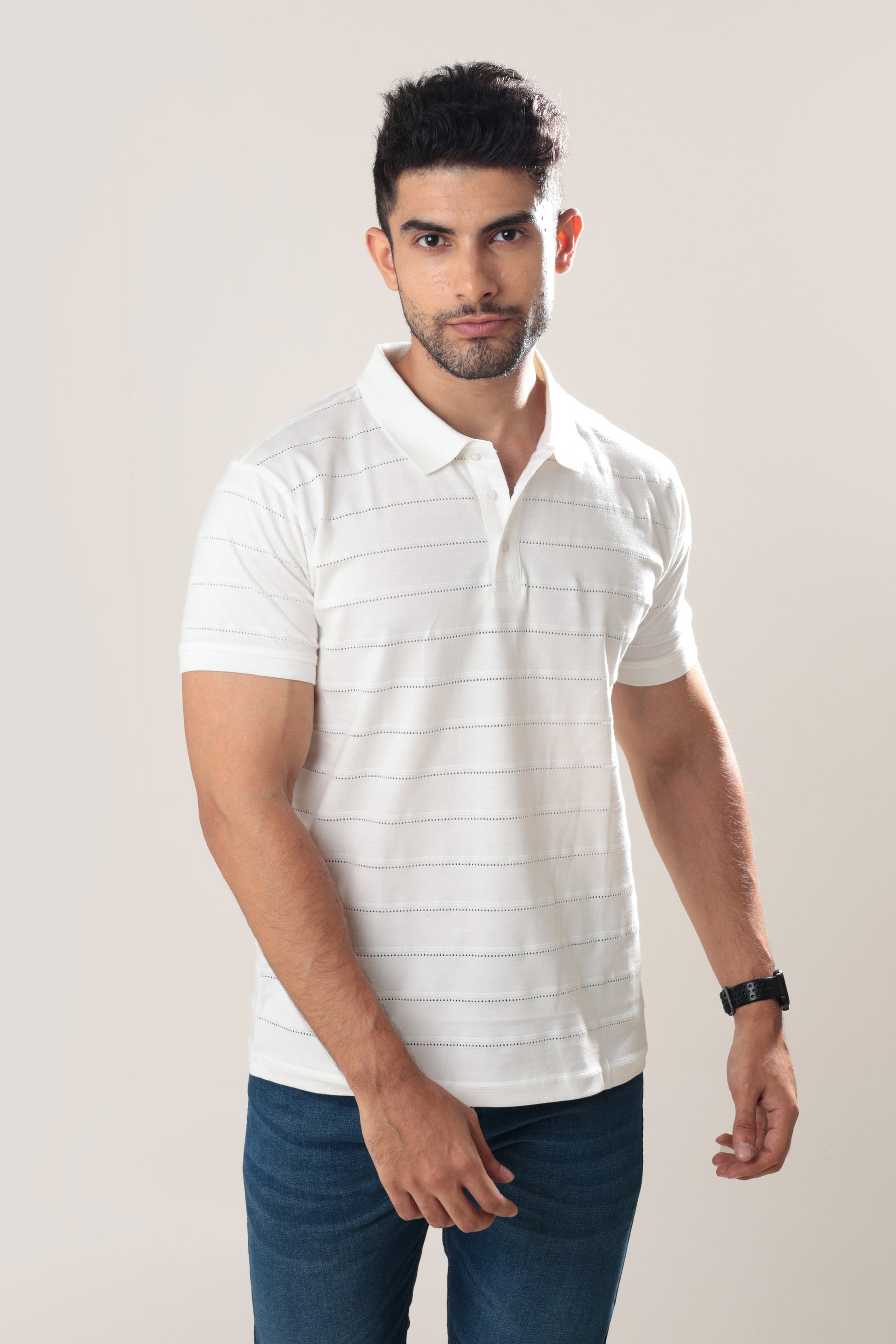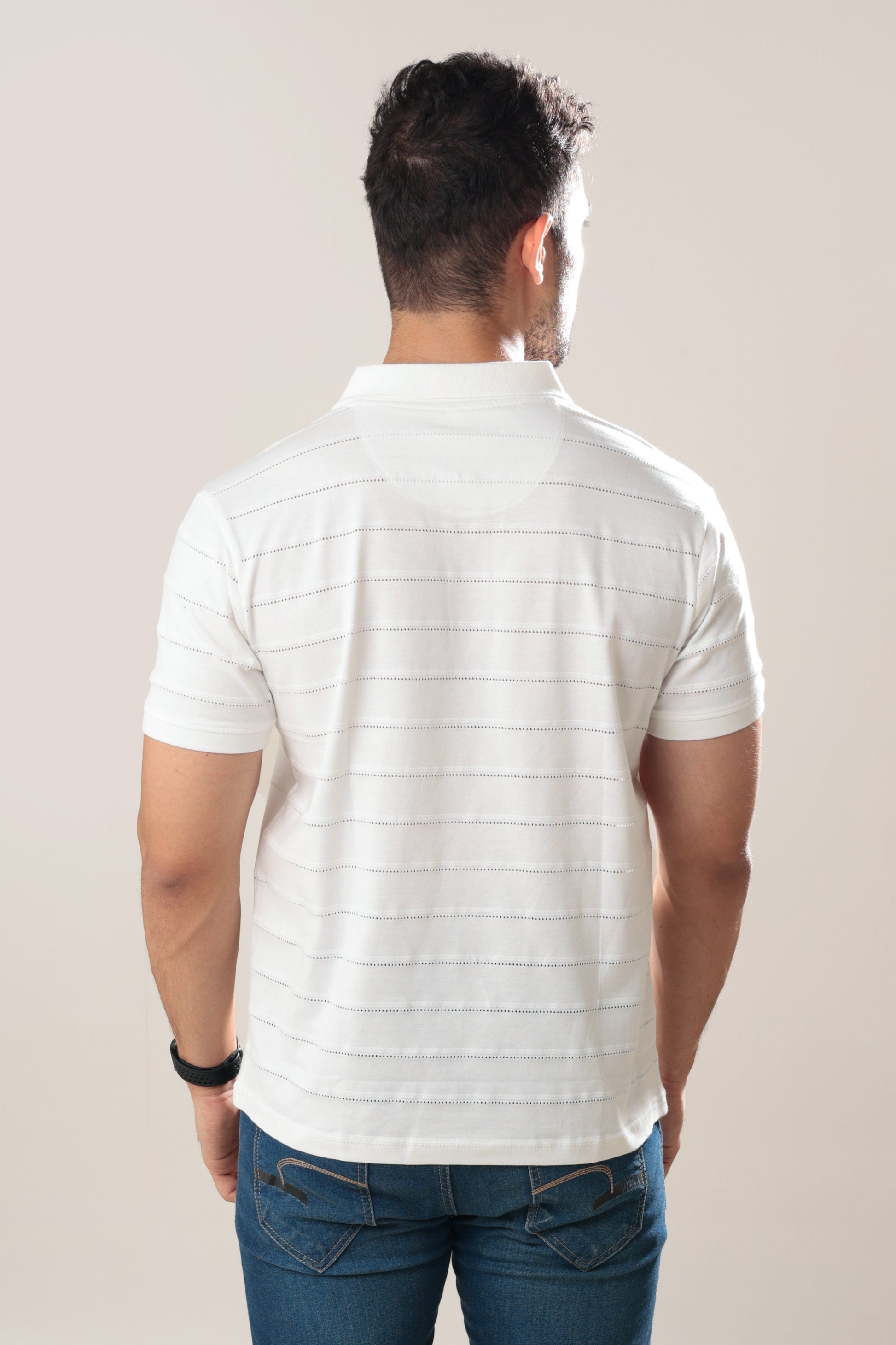 Elevate your wardrobe with our Pointelle Tee in White. This classy and unique piece features a delicate pointelle design that adds a touch of sophistication to any outfit. Crafted with the finest materials, this tee is a must-have for the fashion-forward individual.