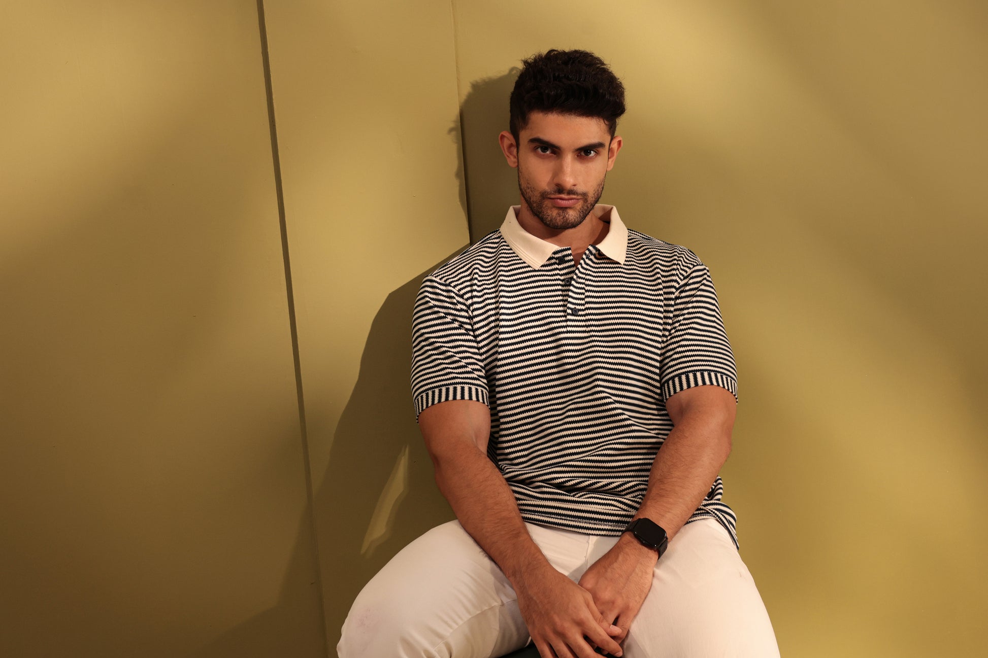 Jithendra Kalla Stripe textured polo