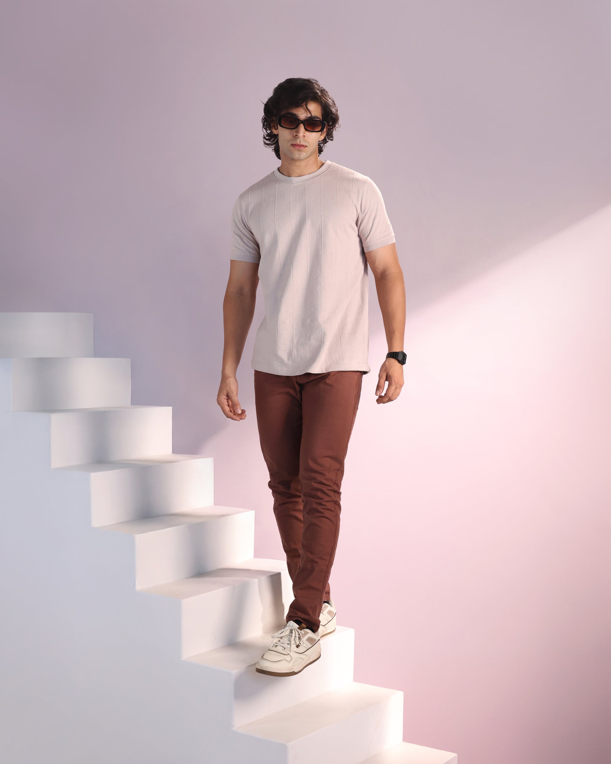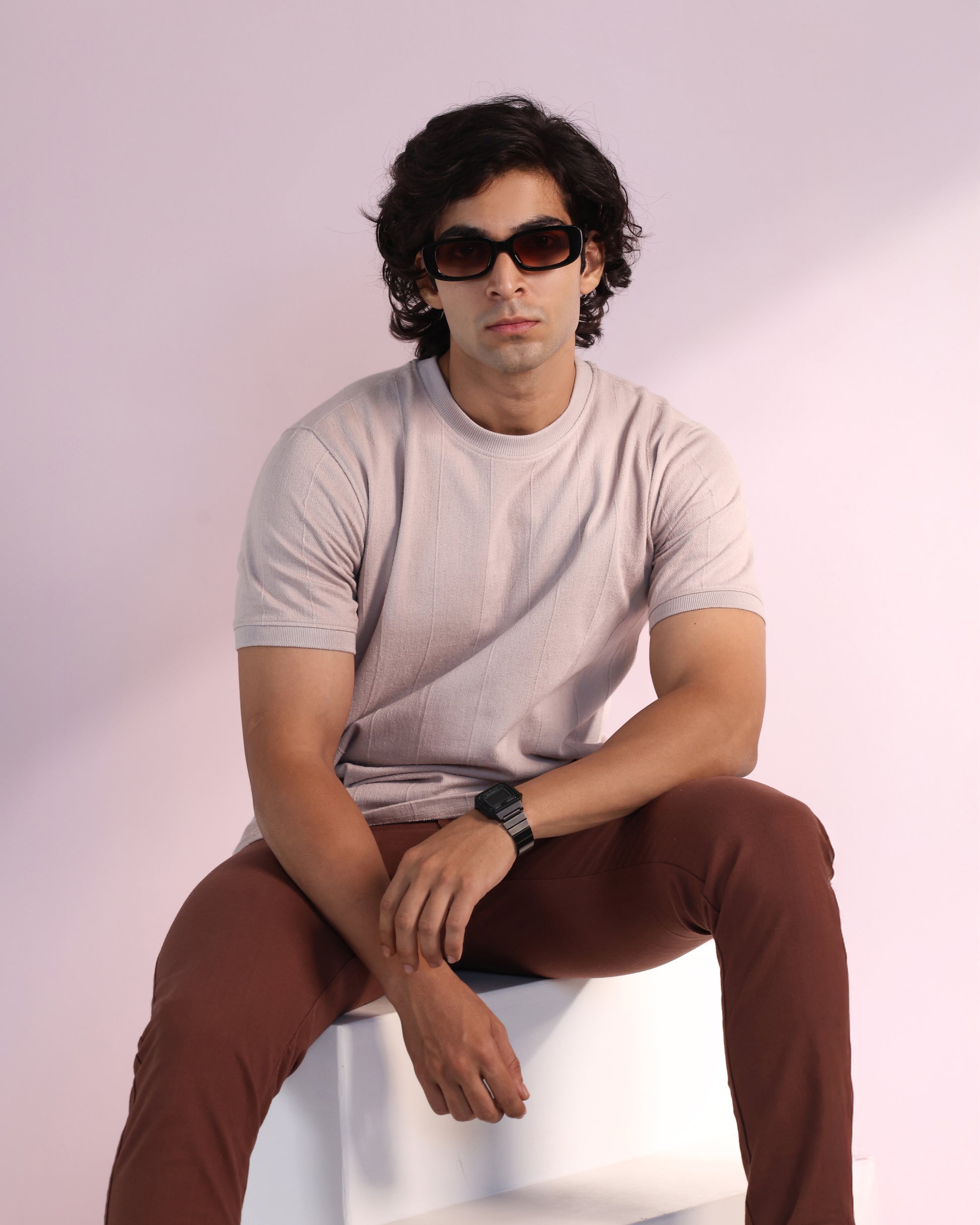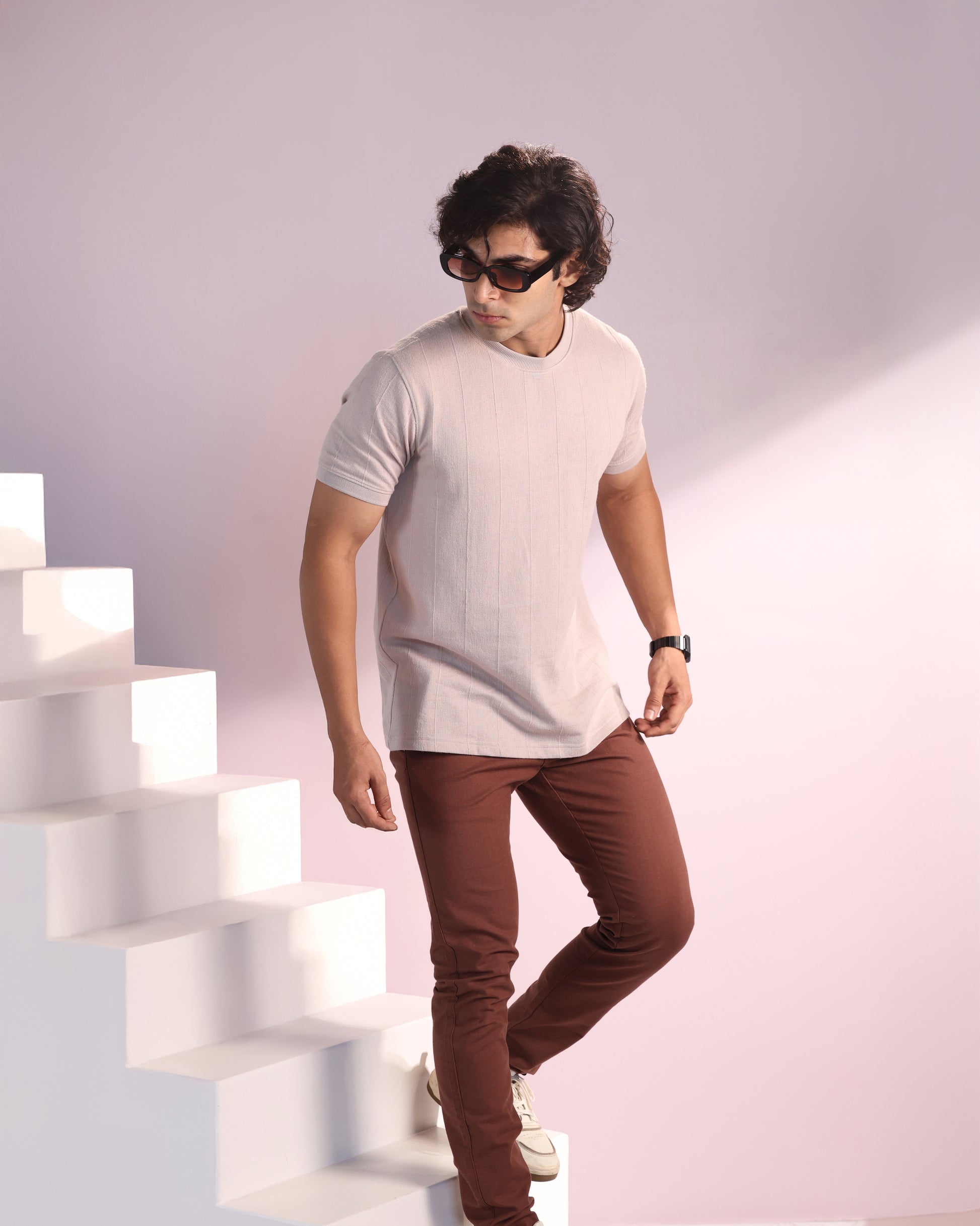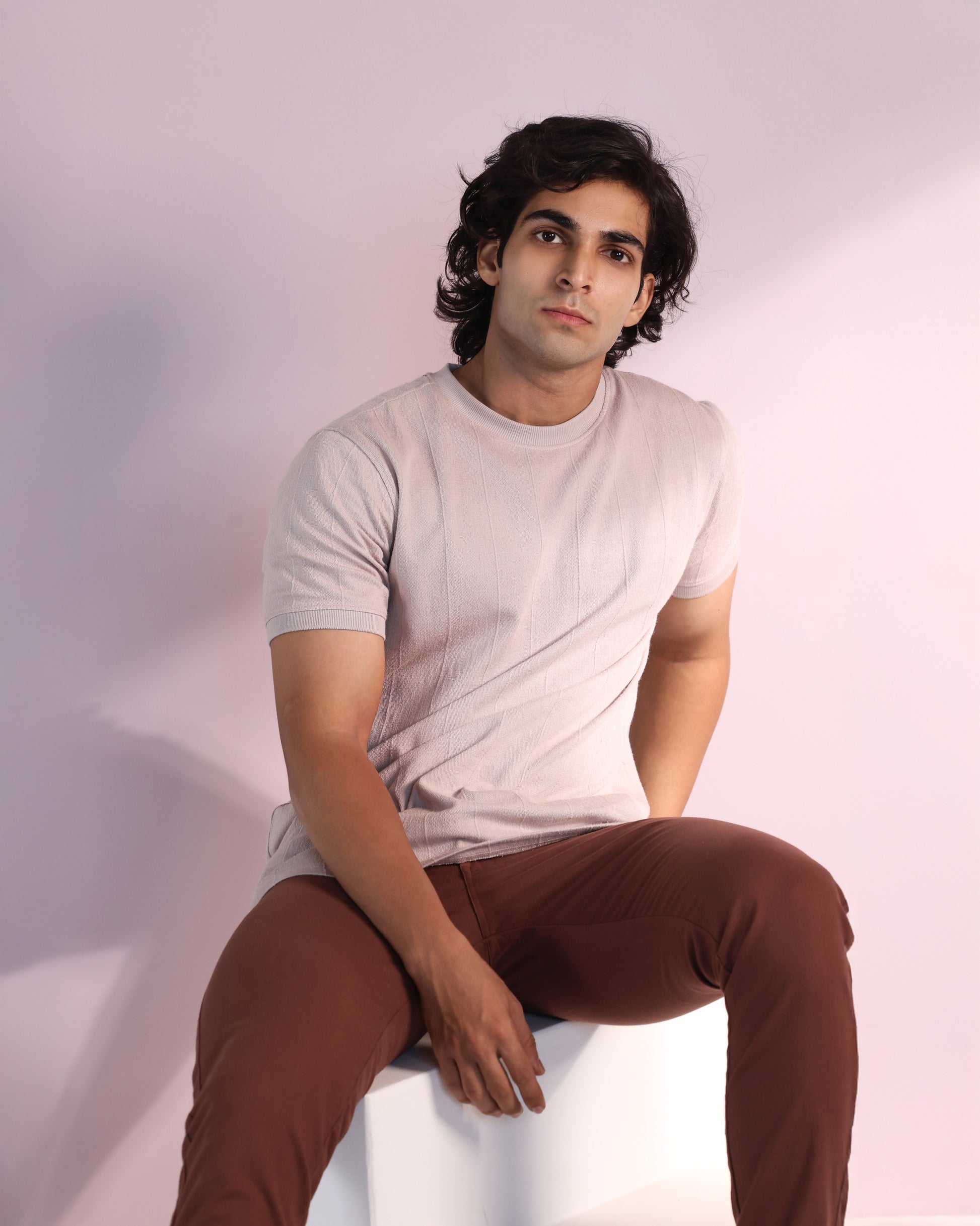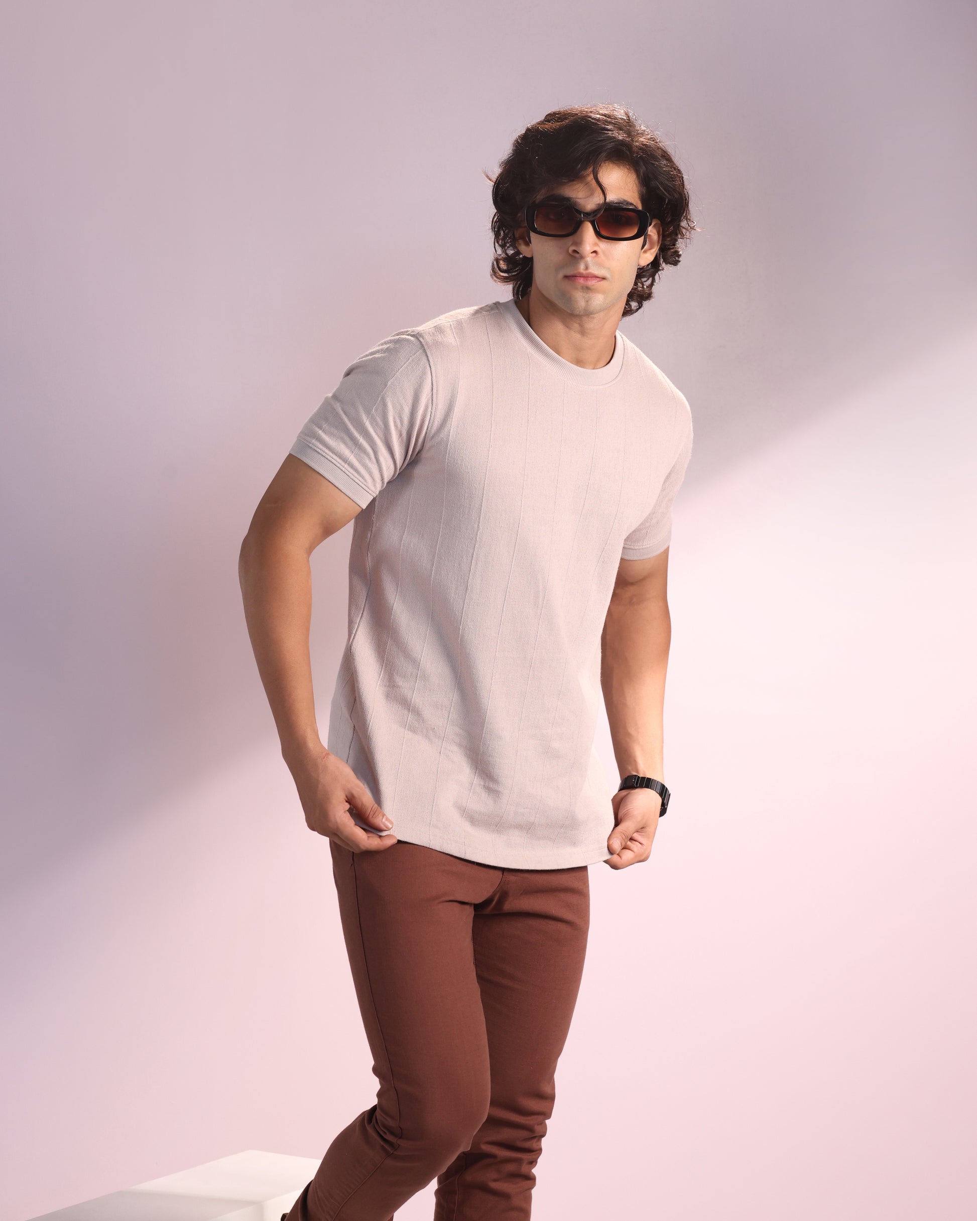 Vertical Jacuqard Tshirt in beige