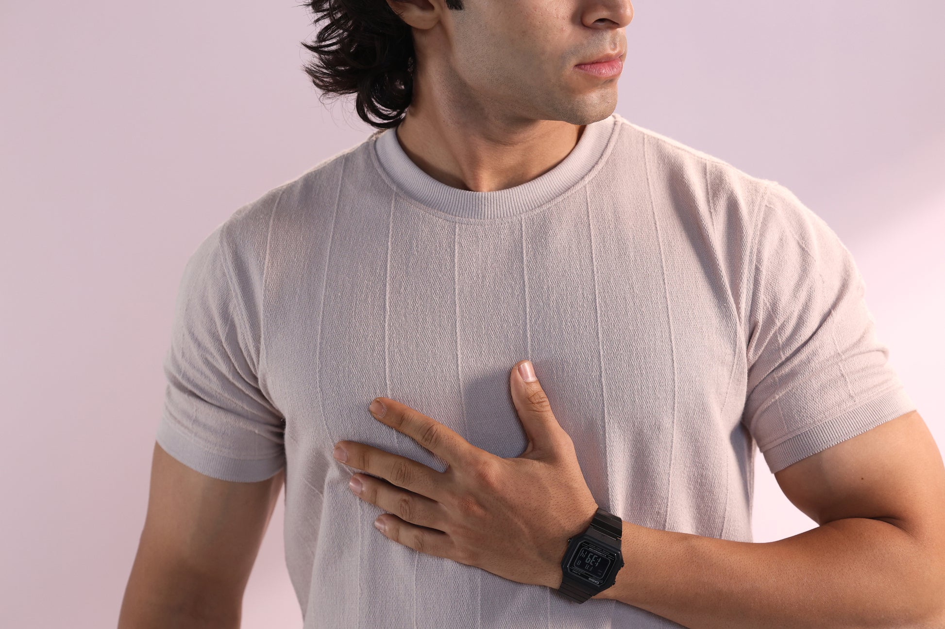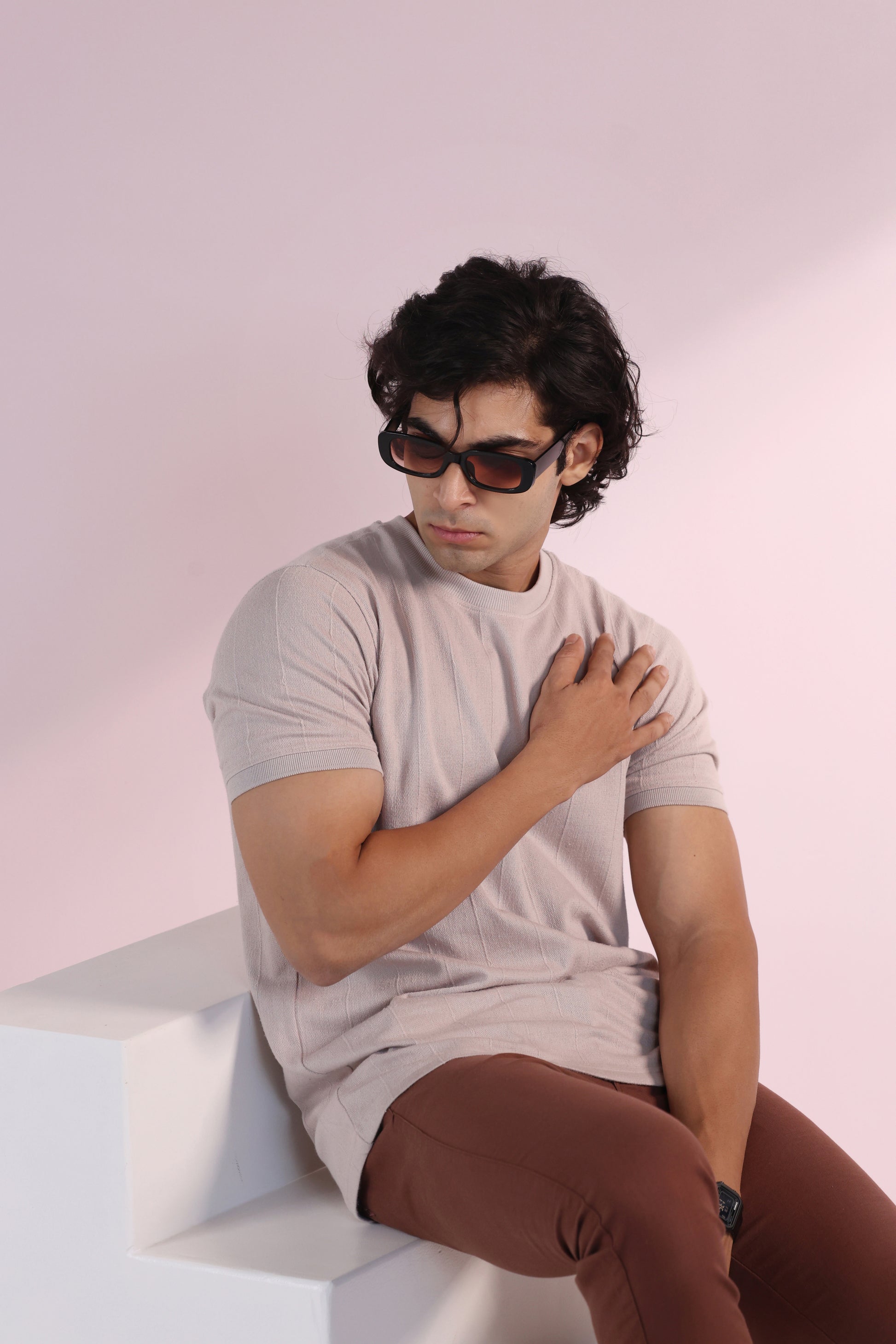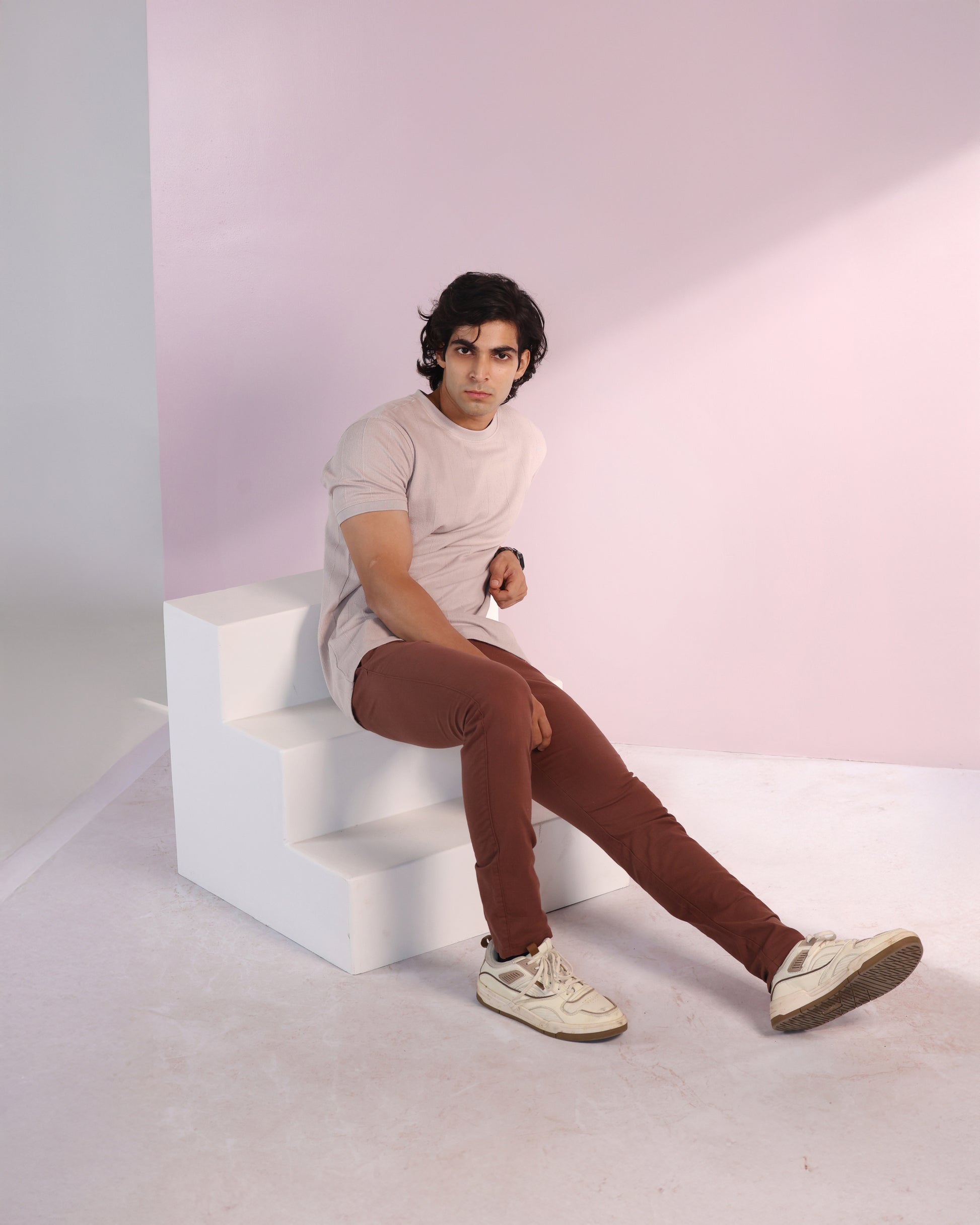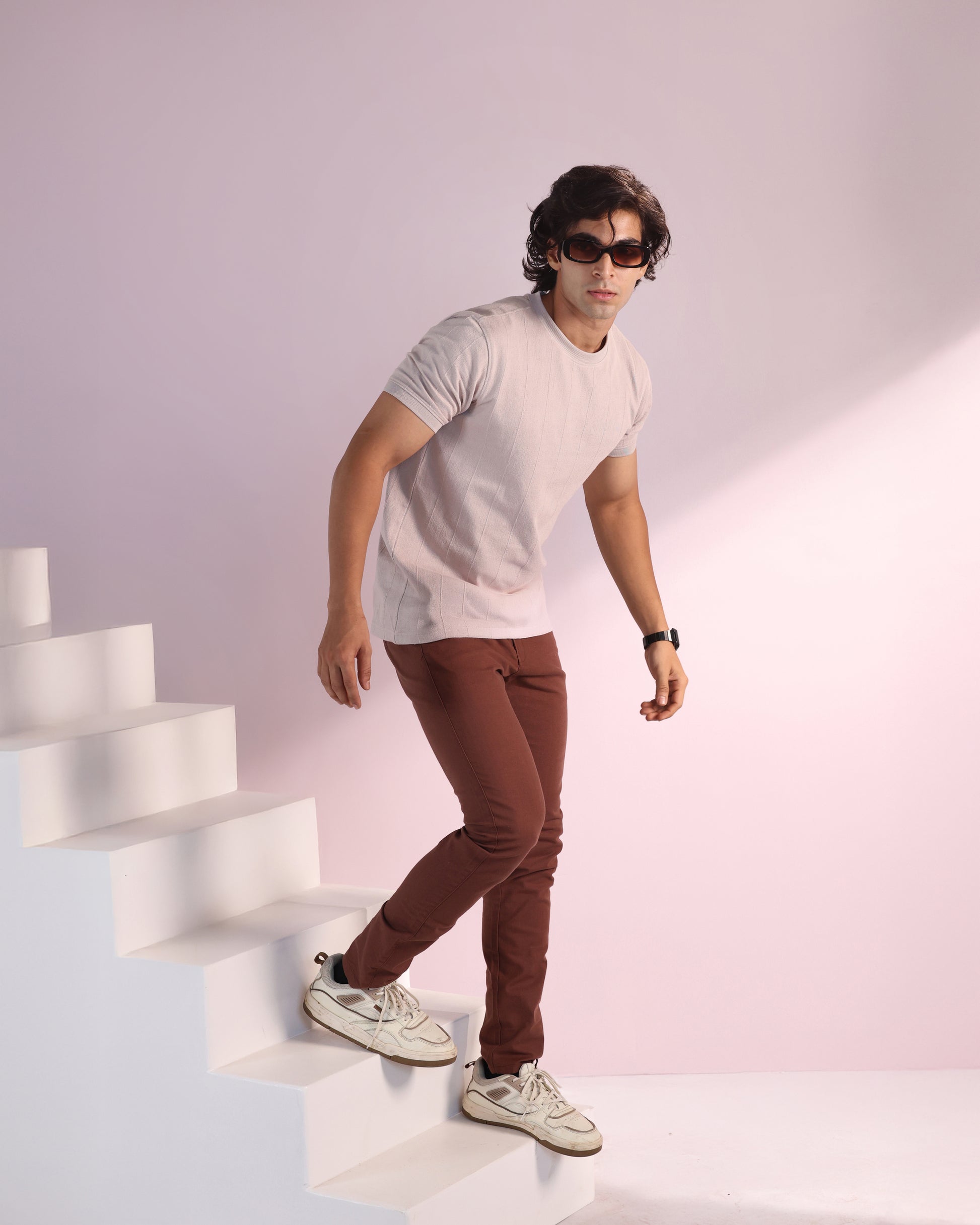 Vertical Jacuqard Tshirt in beige