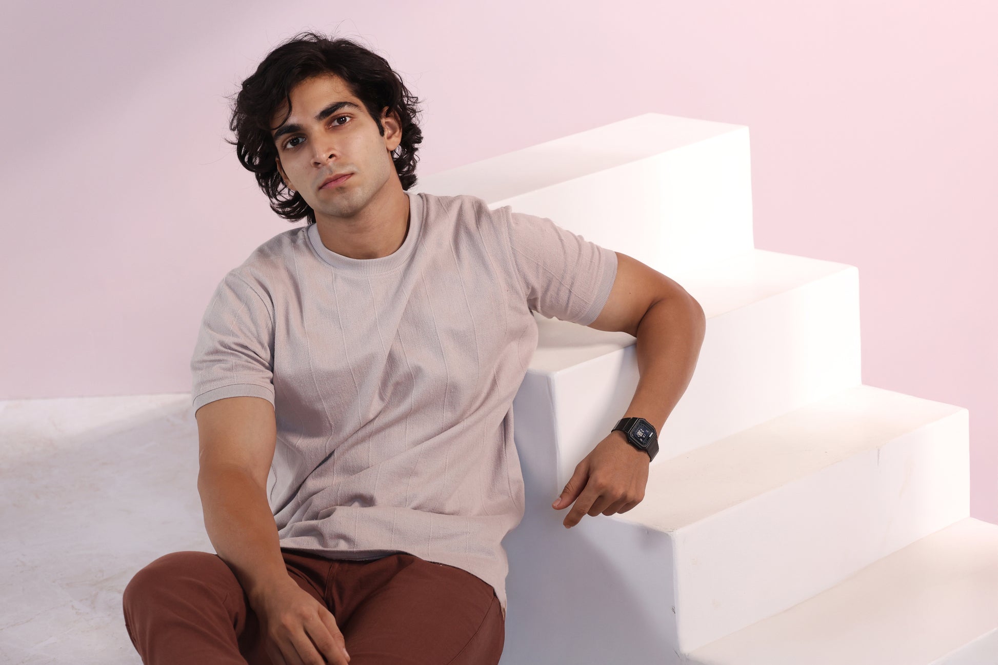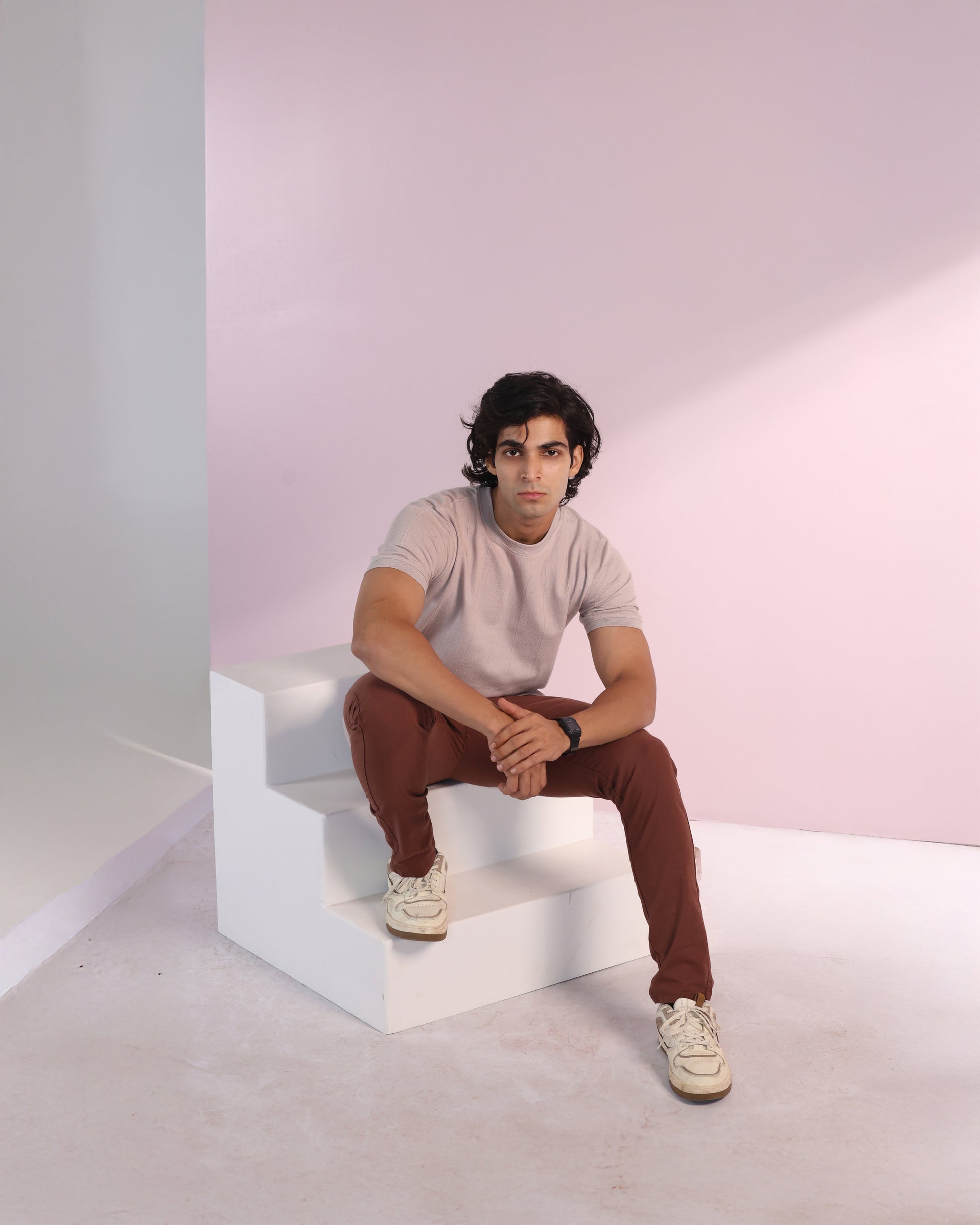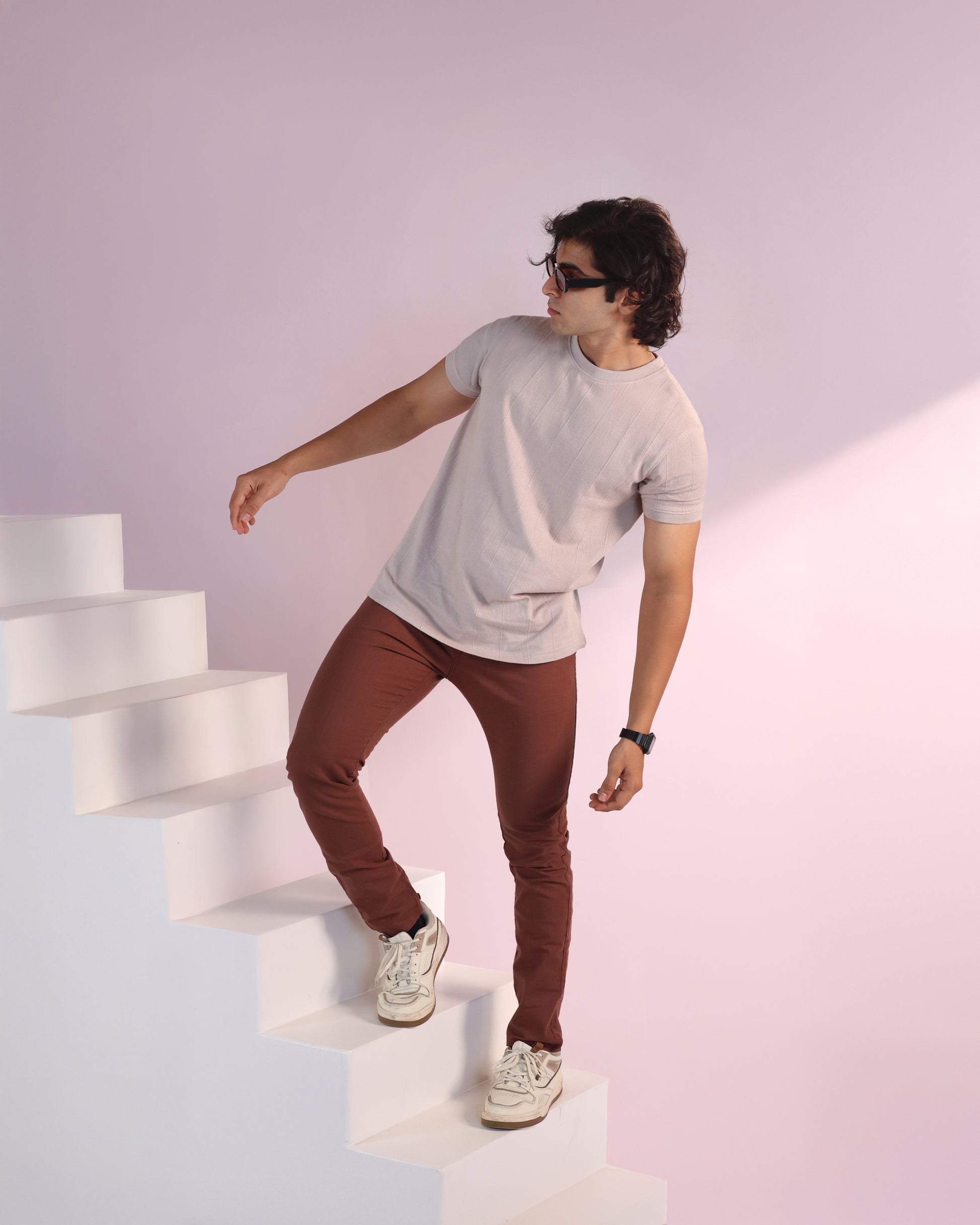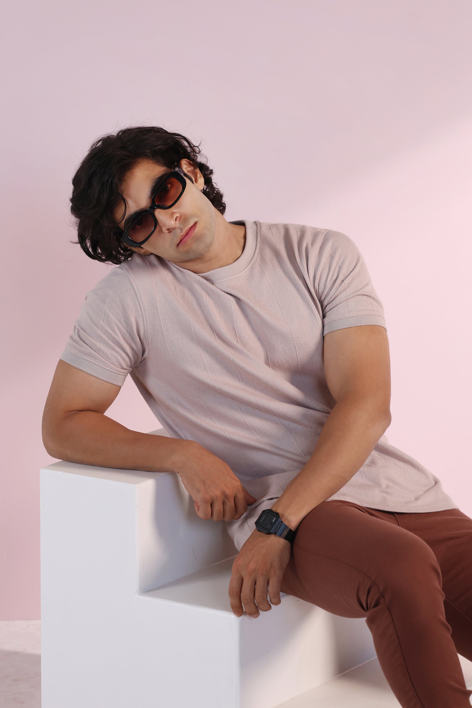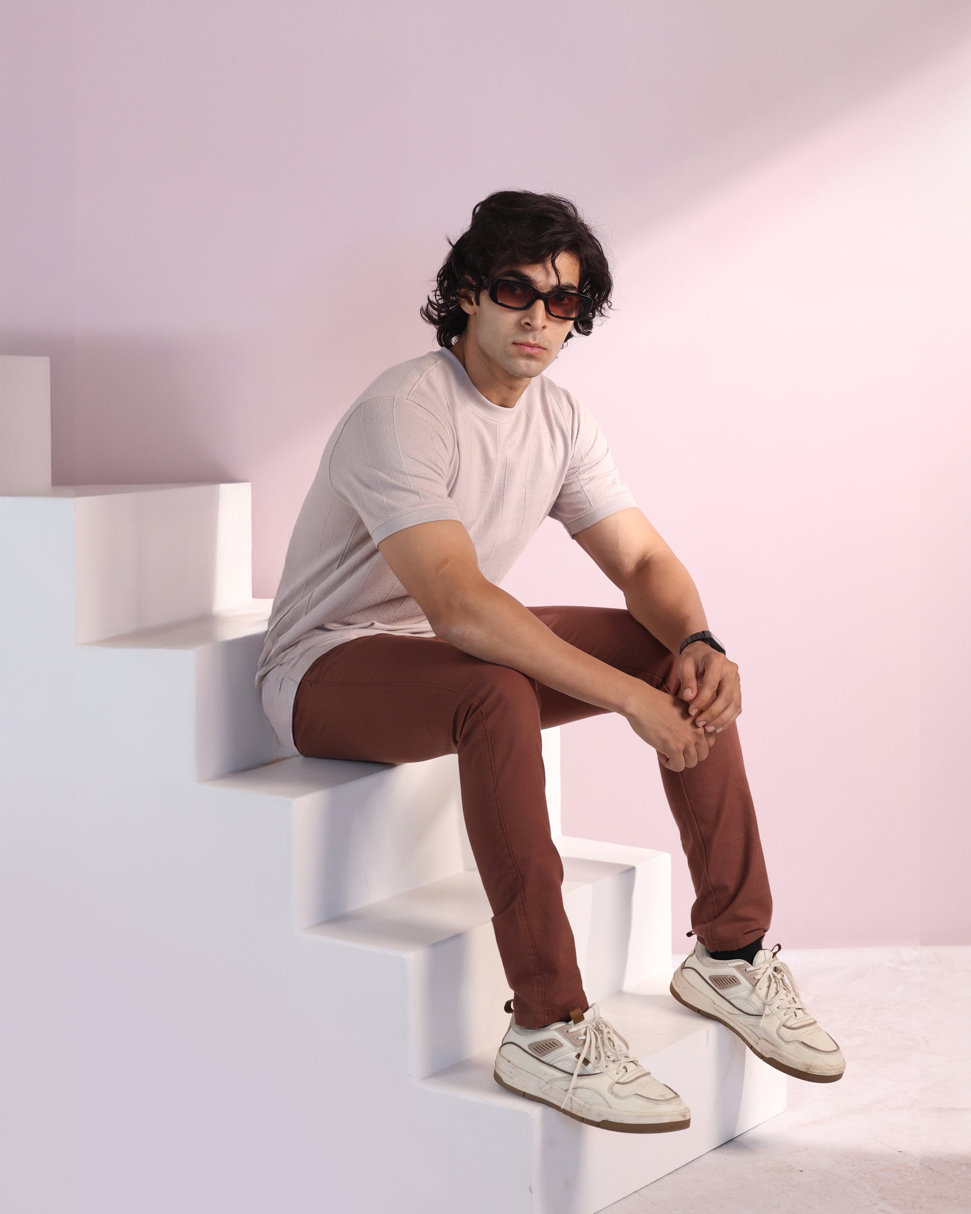Vertical Jacuqard Tshirt in beige