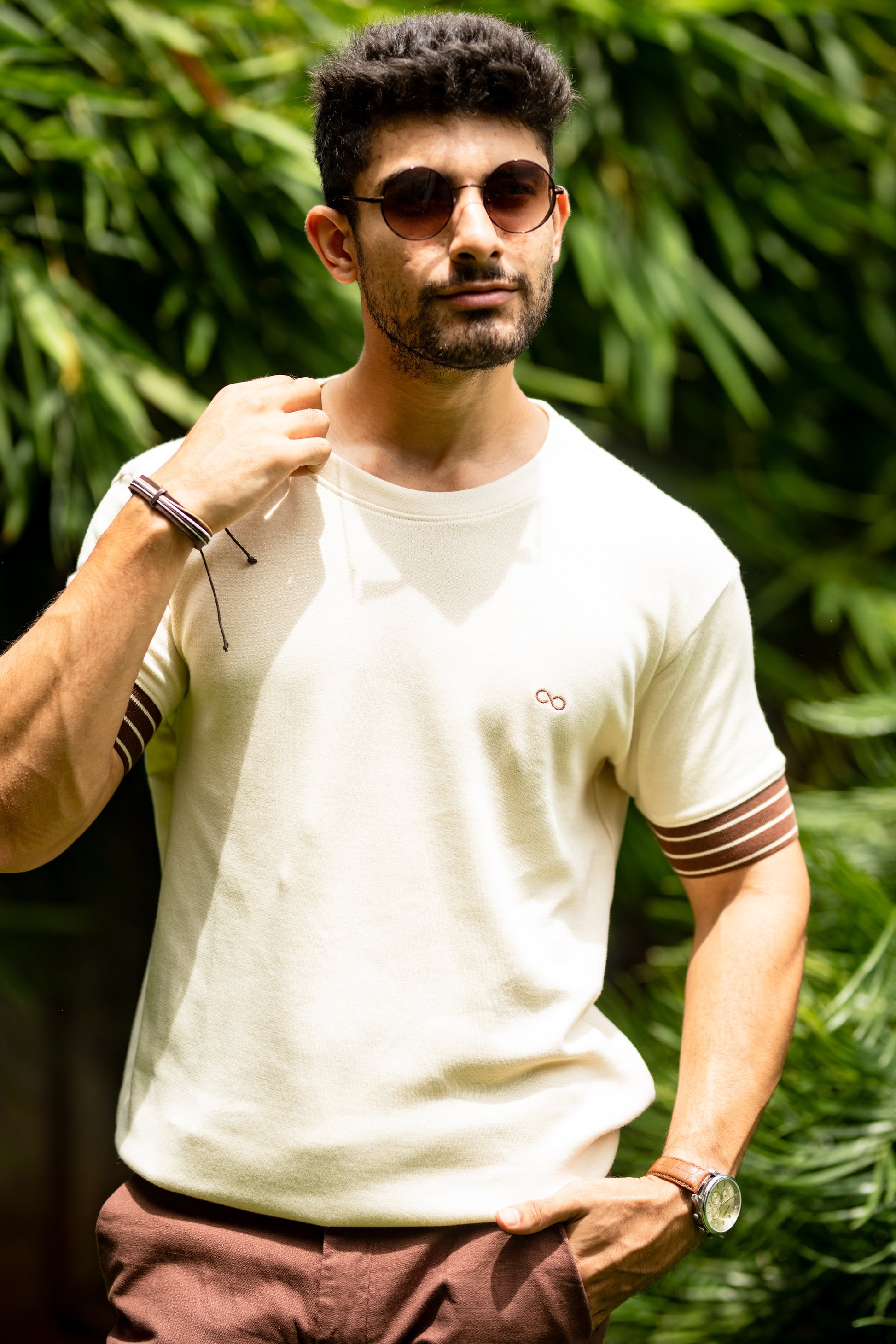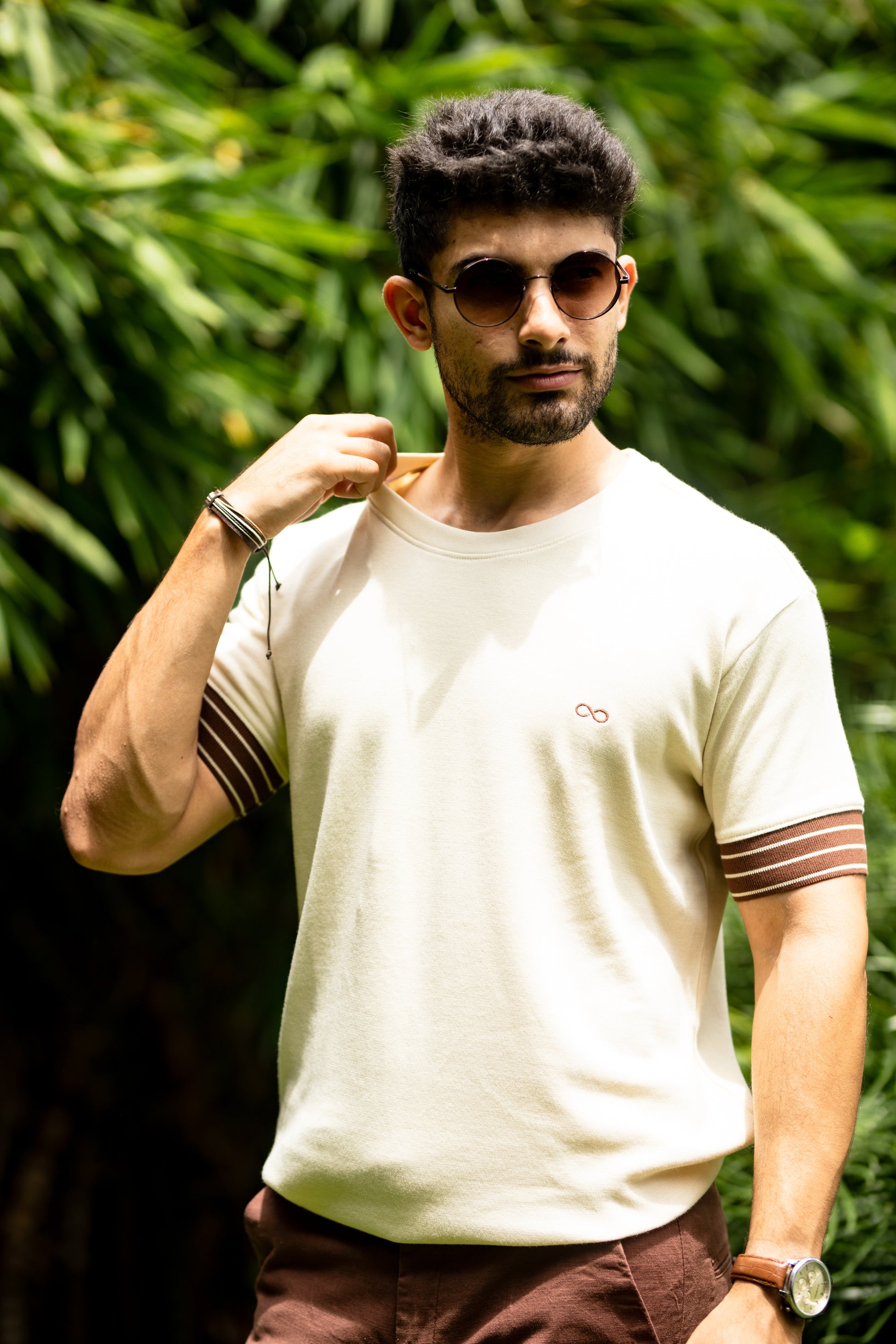 Dr G vivek Goud Wide cuff sleeve t-shirt in beige